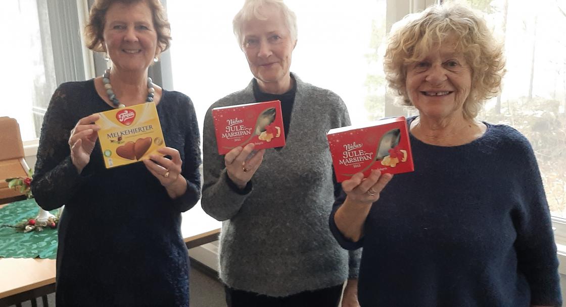 Etter at 3 av oss hadde funnet mandelen i grauten, blei det utdeling av marsipangriser og melkehjerter.