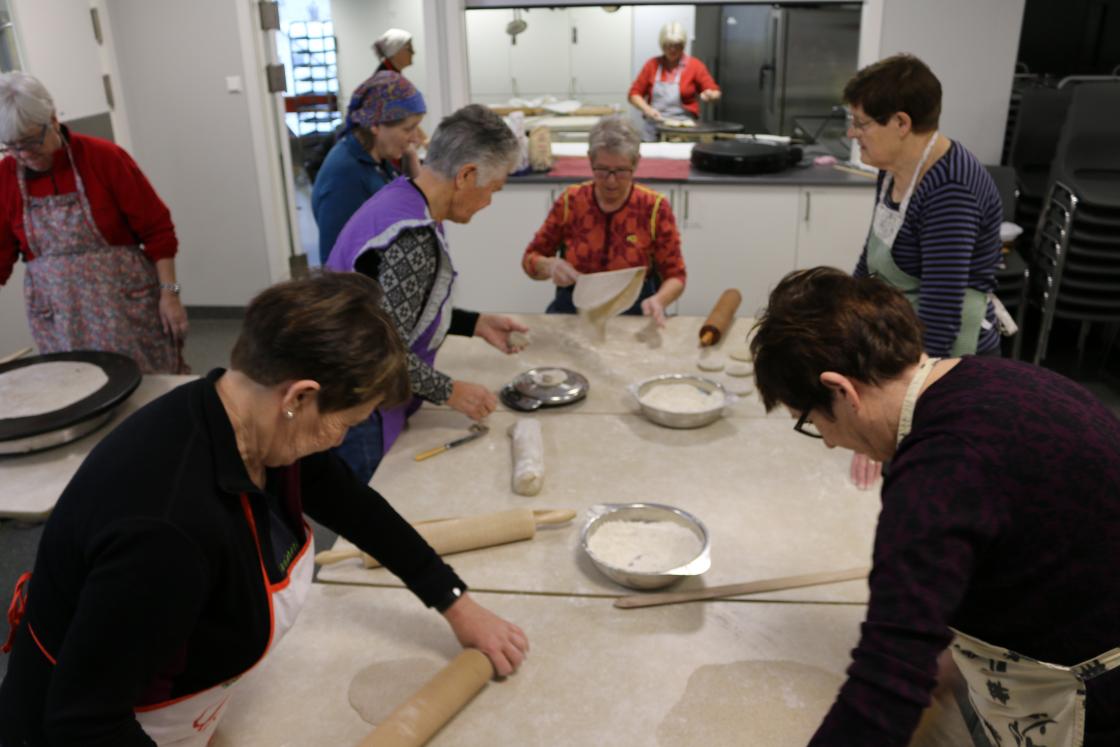 15 og 16. januar 2018 skipa bygdekvinnelaget til kurs i flatbrødbaking for dei av laget sine medlemmer som var interesserte. Vi var 15 som deltok. Vi heldt til på kjøkkenet i Skare Grendahus. Fyrste kvelden lagde vi knoa av 5kg poteter som Gunvor hadde kokt og malt på førehand. Vi brukte oppskrift som laget hadde fra før og knadde inn mjøl før me sette knoa til å godgjera seg natt over .