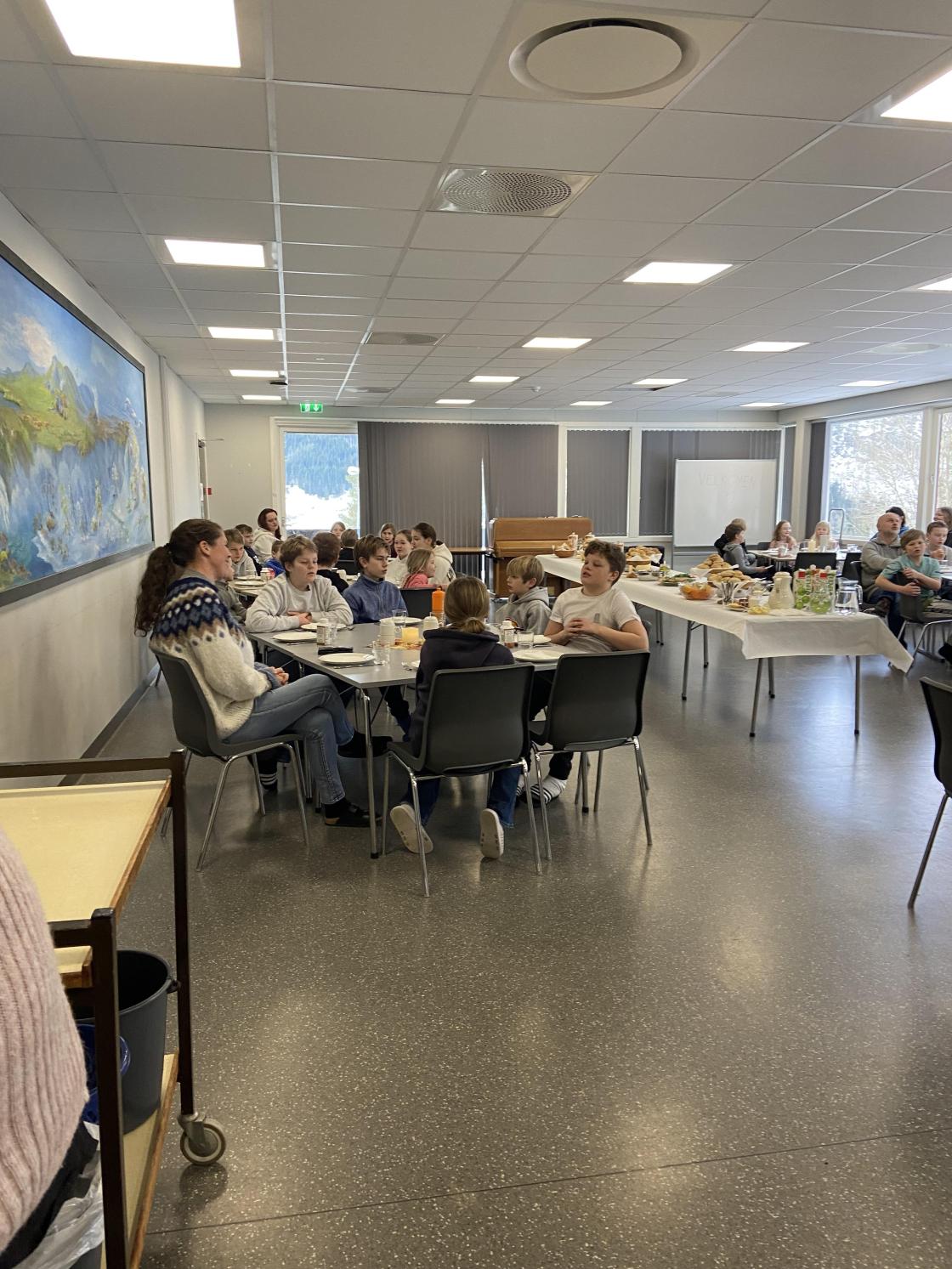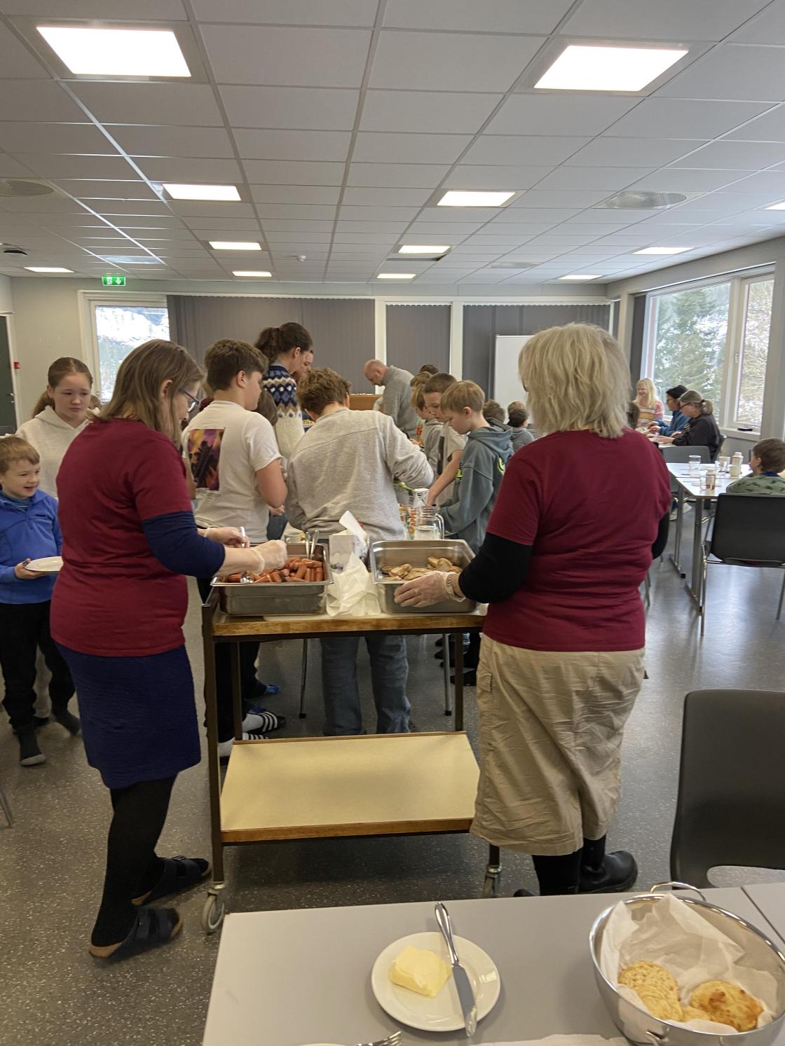 Skare bygdekvinnelag inviterer Skare skule, både elever og tilsette til lunsj. Dette er blitt en årlig begivenhet. Elevene gleder seg og vi i bygdekvinnelaget gleder oss også. I år inviterte vi de eldste barna fra barnehagen. Vi var 14 medlemmer som møttes kl 0900, onsdag 4. februar på Grendahuset. Ingunn og Gunvor stod for innkjøp av egg, pålegg, frukt og juice. Det ble også servert "blekksprut"-pølser og hjertefiskekaker. Noen av medlemmene hadde bakt havreboller. Vi dekket langbord til maten og småbord rundt. Gunvor ønsket velkommen og elevene sang for maten. Elevene koste seg og spiste godt. Grethe var vikar for rektor for denne dagen, hun takket for invitasjon og fortalte at elevene alltid gleder seg til denne dagen. Det er stas å kunne velge akkurat det de har lyst på selv. Elevene er også veldig flinke til å rydde etter seg. Tusen takk for en hyggelig lunsj fra SBK. Regner med at det blir lunsj i 2027 også.