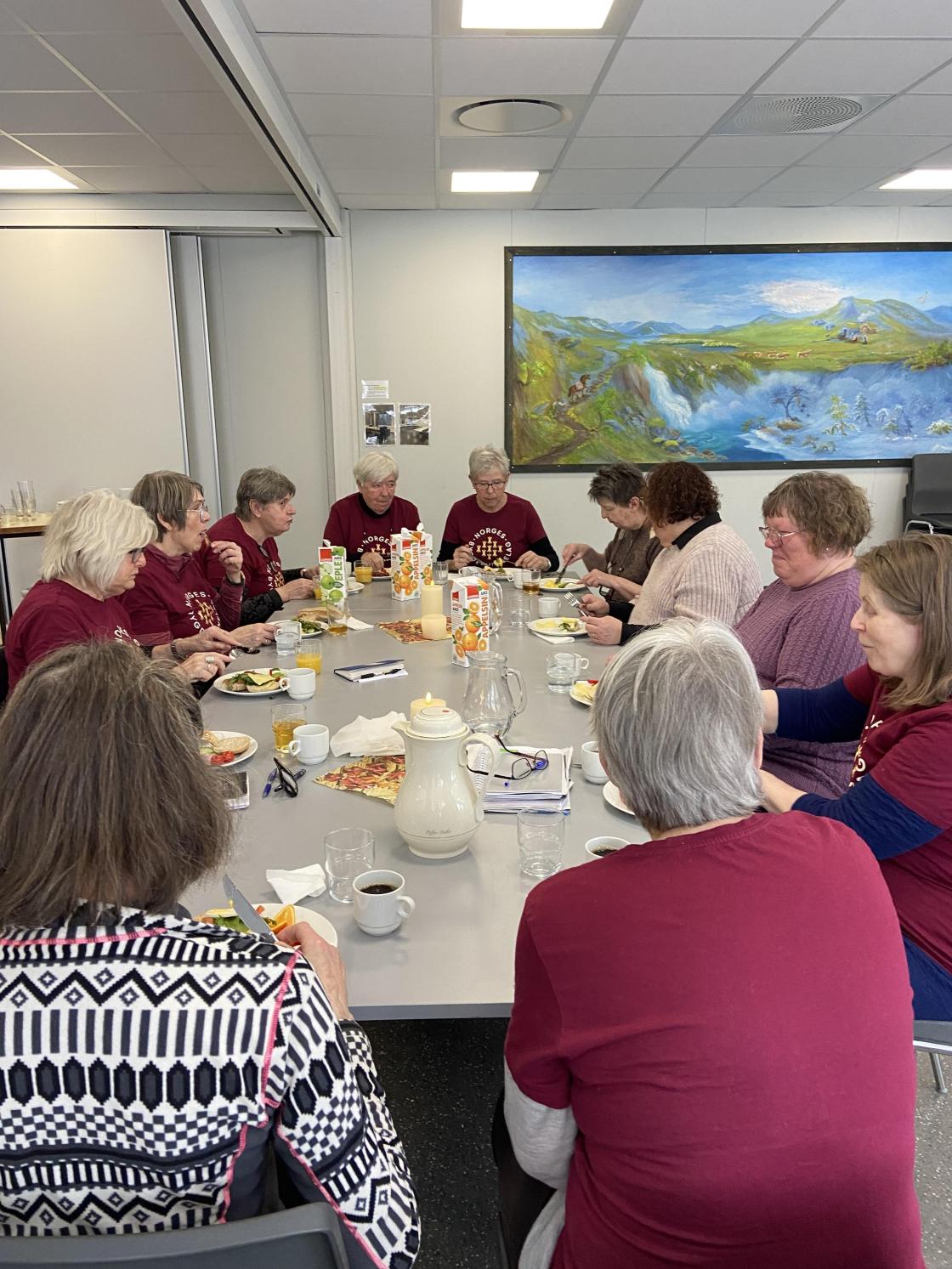 Medlemsmøte med kaffe og restemat fra lunsjen.