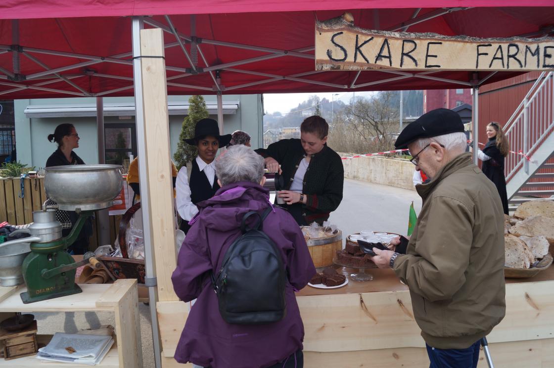 Lørdag 6.april var me ein gjeng frå bygdekvinnelaget som hjalp 4H arane som hadde laga til "Skarefarmen" i Odda. Det var grunna teaterstykke som skulle visas samme kveld om Albert og Leonie. Alle i Odda blei bede om å kle seg ut i gamle klede og ein del hadde gjort det.
