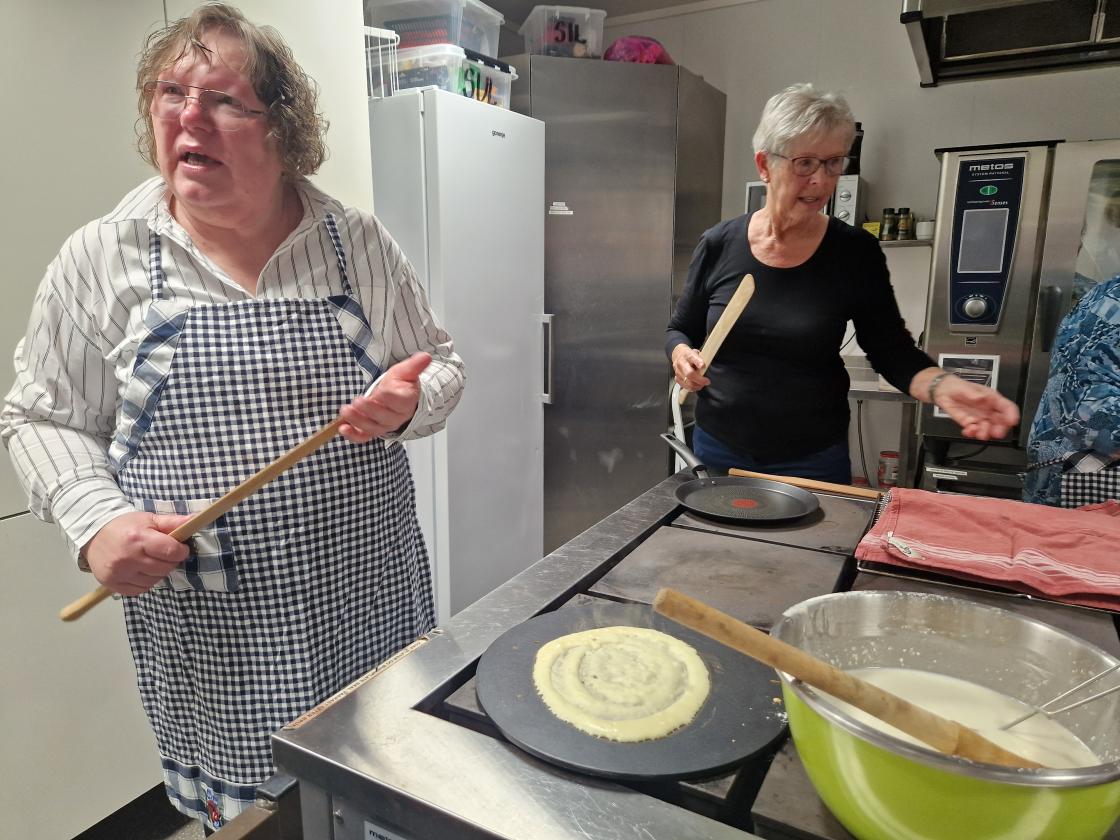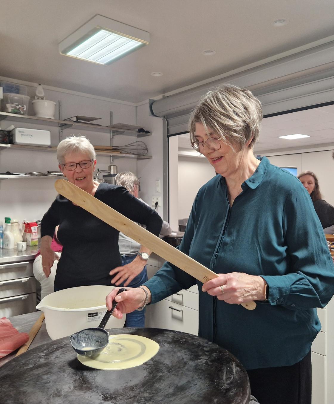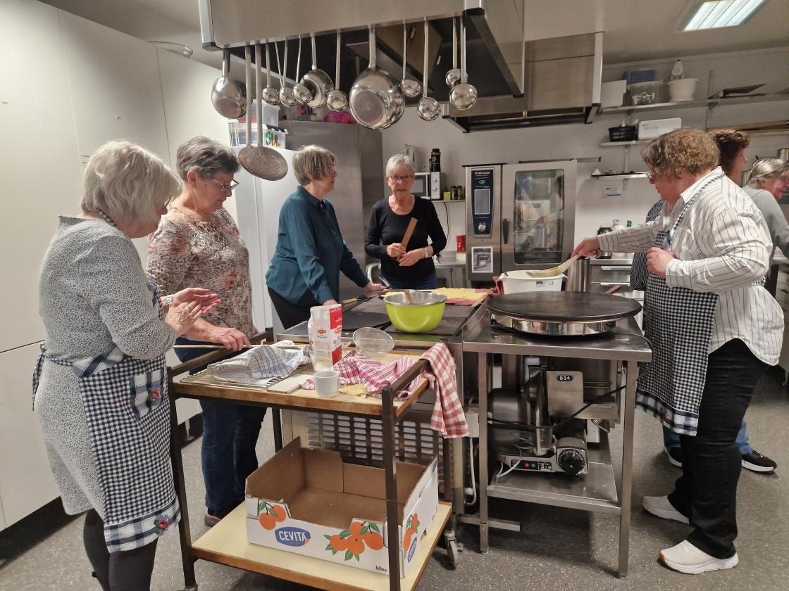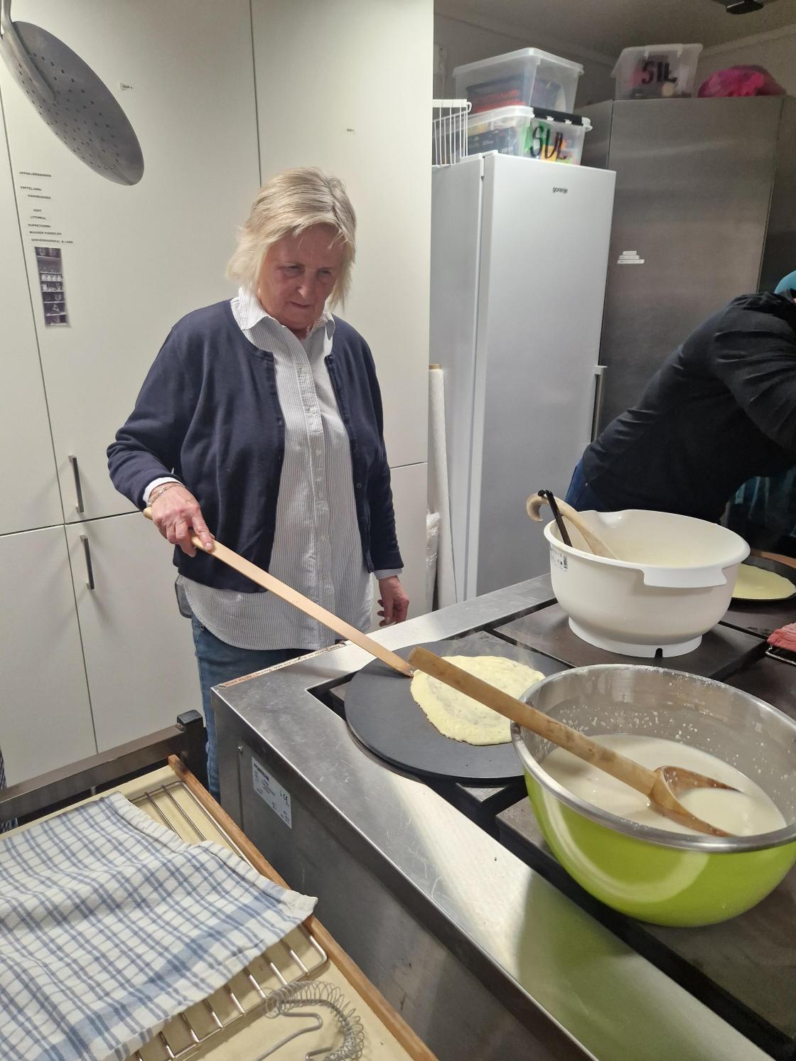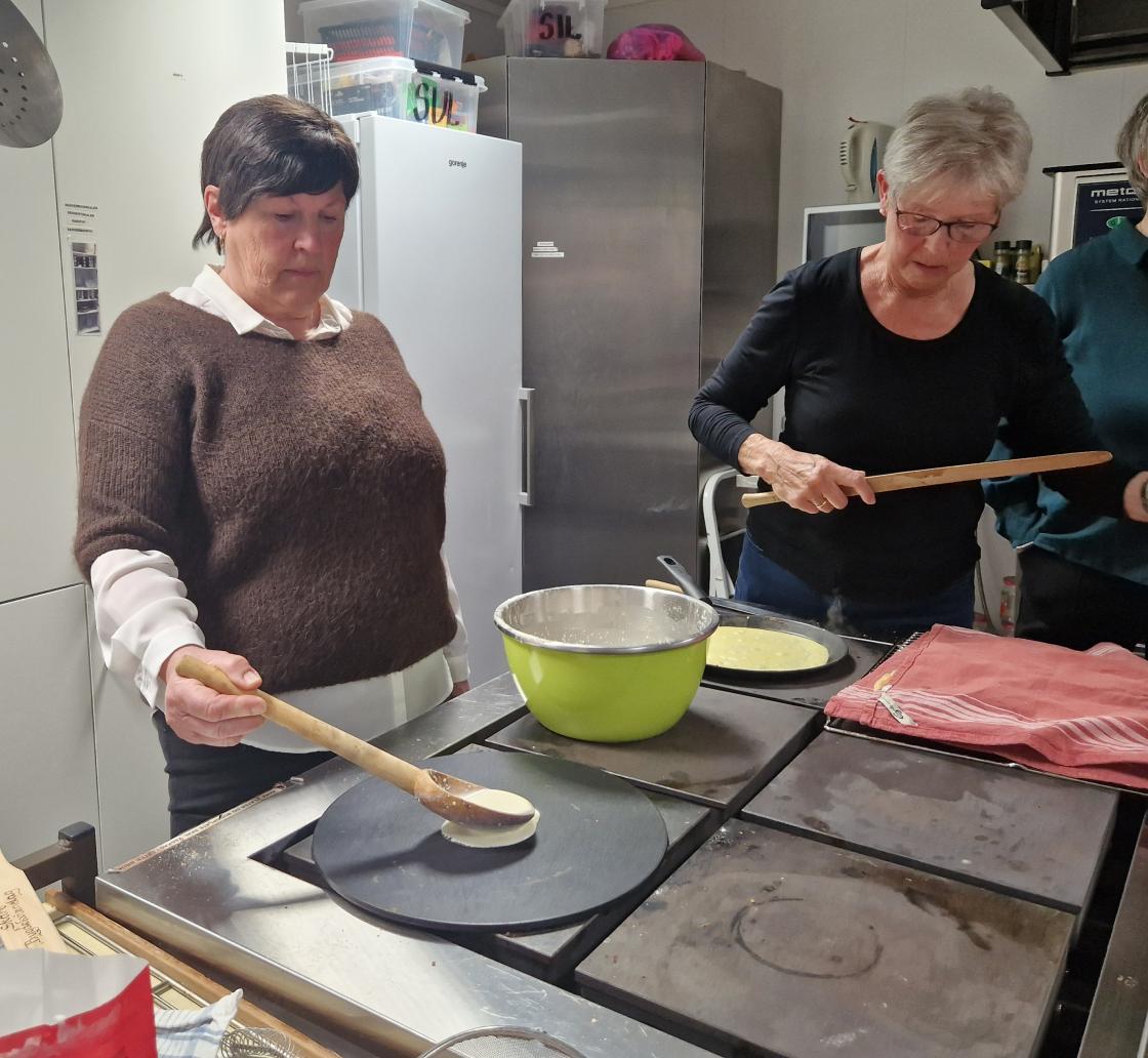 Medlemsmøte til Skare Bygdekvinnelag var denne gang et arbeidsmøte. Vi laga mjølkekaker. Gunvor ønsket velkommen til 16 medlemmer. Noen startet med å dekke bord, pyntet med påskeservietter, gule tulipaner og påskeliljer som ble loddet ut etterpå. Andre startet med å lage røra til mjølkekaker, praten gikk livlig om bruk av oppskrifter og ikke bruk av oppskrifter. Uansett så ble det nydelige, tynne og flotte mjølkekaker. Alle fikk være med å steike og øvelse gjør mester.