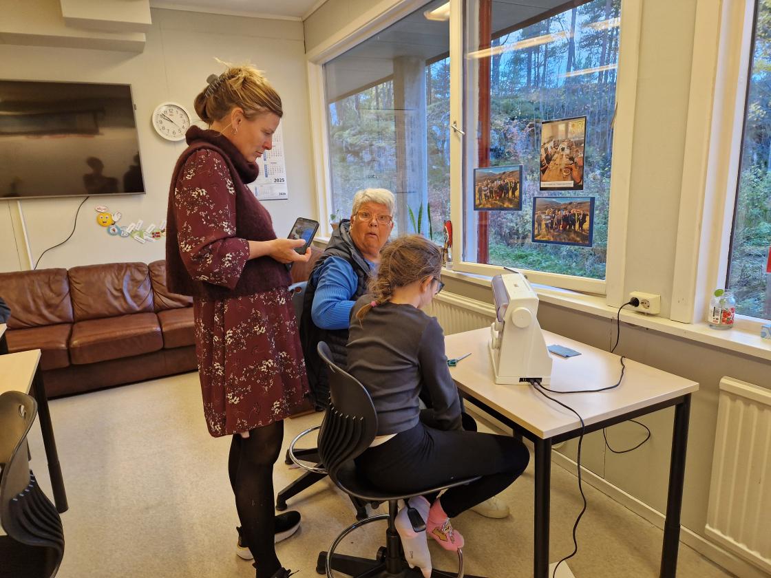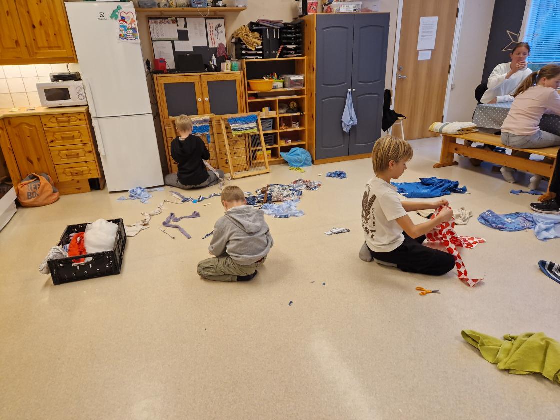 Alle elevane på skulen fekk prøva seg på kjøken, symaskin, og veving der dei klipte opp remser av tøy dei hadde med seg.