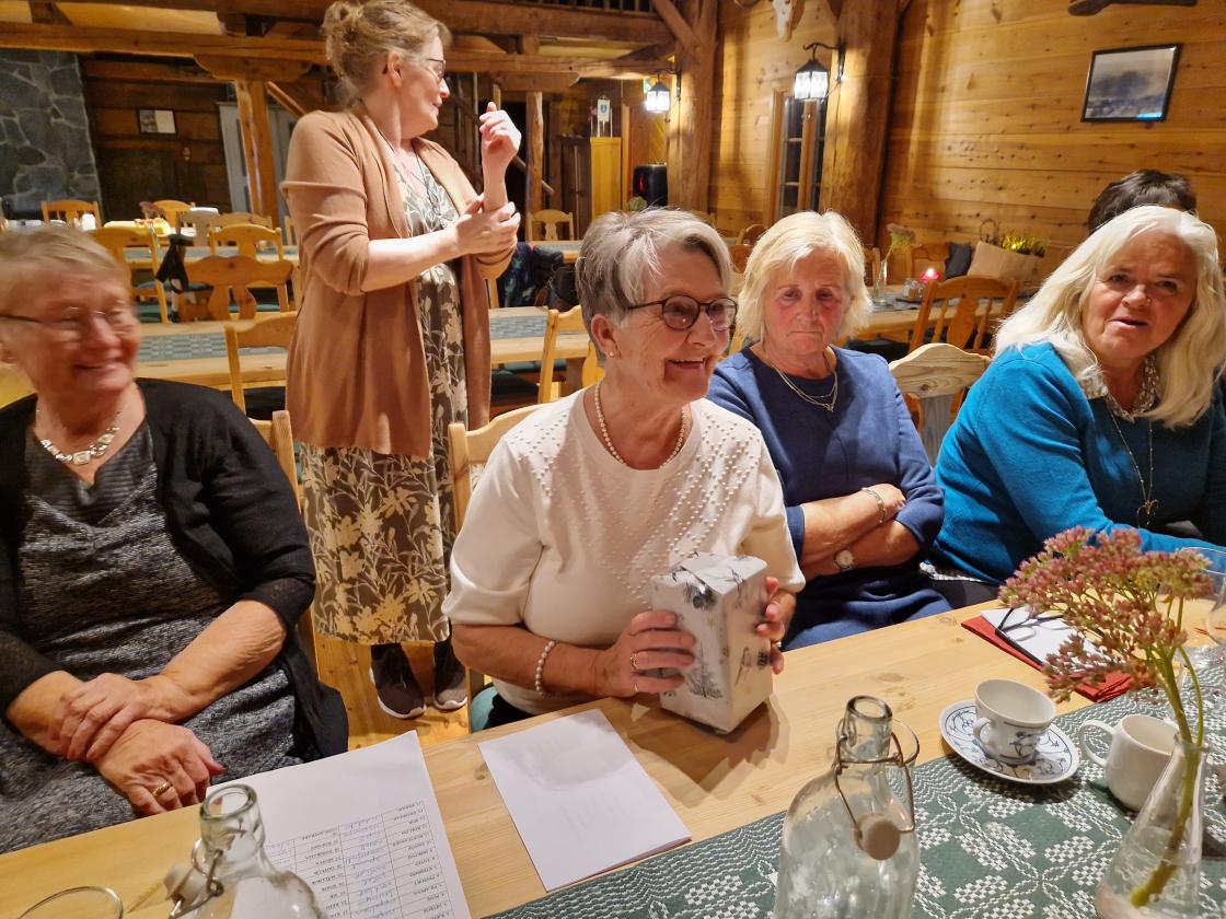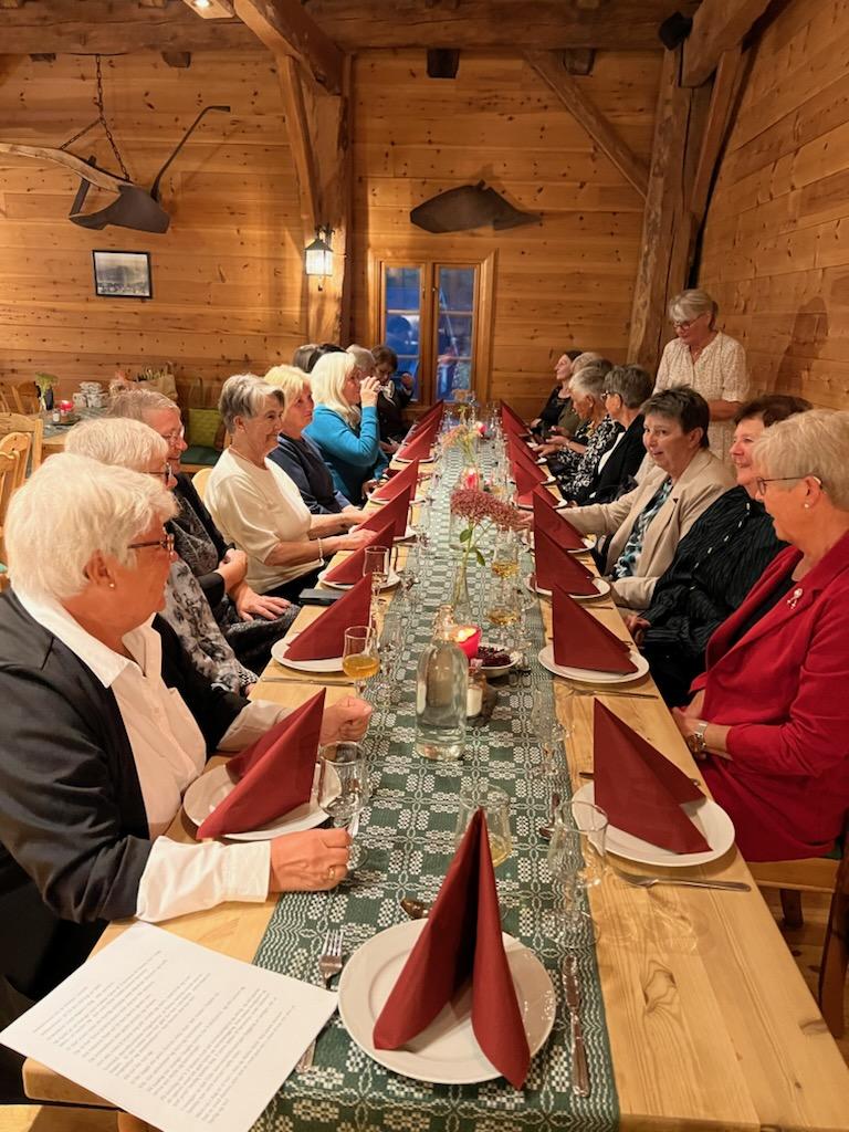 Skare Bygdekvinnelag ble stiftet for 75 år siden og lørdag 19. oktober 2024 ønsket vi å ha en markering. Vi var 20 medlemmer som møttes på Skarsmo. Der ble vi hentet av Odda Rutebuss og kjørt til OlaLøo i Mauranger. Vi ble tatt vel imot av Inger Lise. Menyen var hjortegryte og karamellpudding til dessert. Nydelig mat.