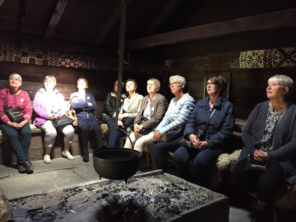Rundturen gjekk så til dei tilflytta restaurerte bygningane ovafor museet, gamle stover, mange andre hus som høyrer til eit gardstun, eller i bygda i gammal tid. Mykje å sjå og mange inntrykk. Det var jammen ikkje berre berre i gamle dager, med jordgolv, steinhellegolv, open ildstad, grue og åpning i taket (ljore), røykfylte stover, der heile storfamilien sov i sine korte senger, der dei og kokte maten og arbeidde med mang slags handarbeid.