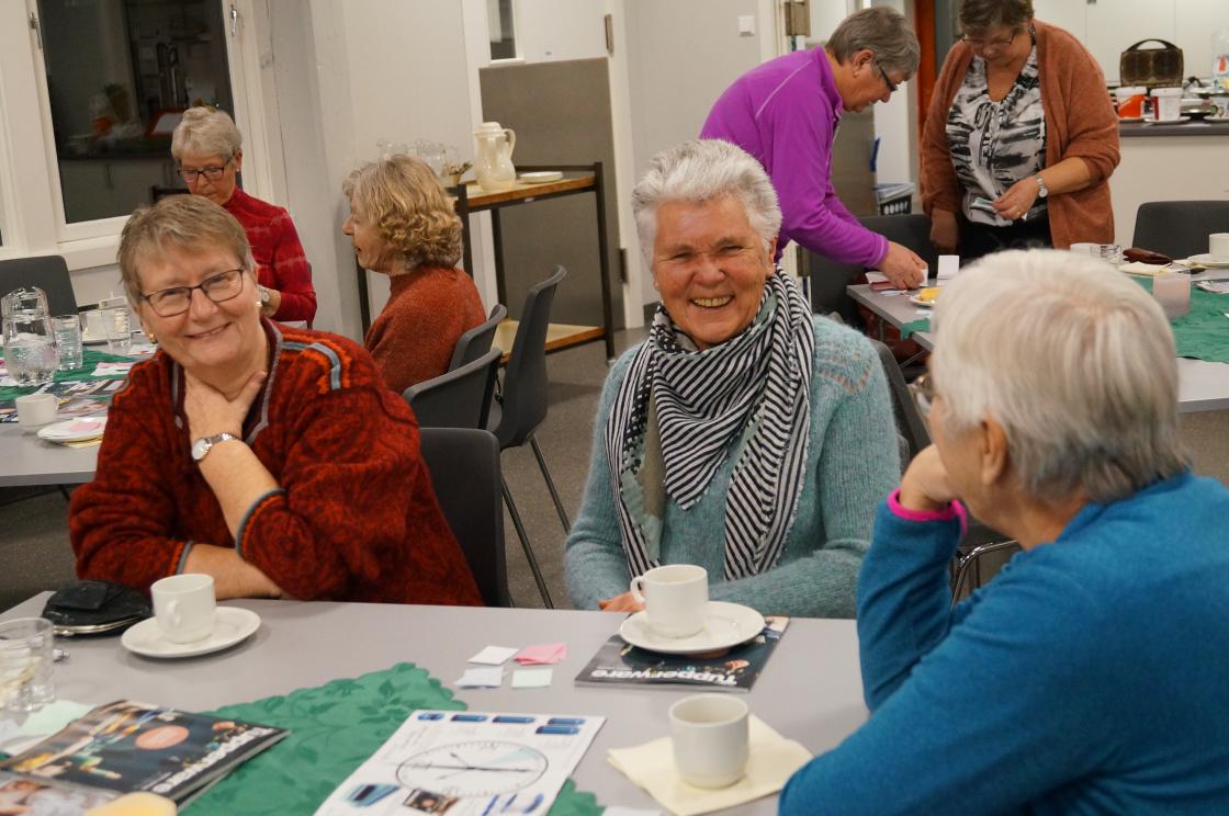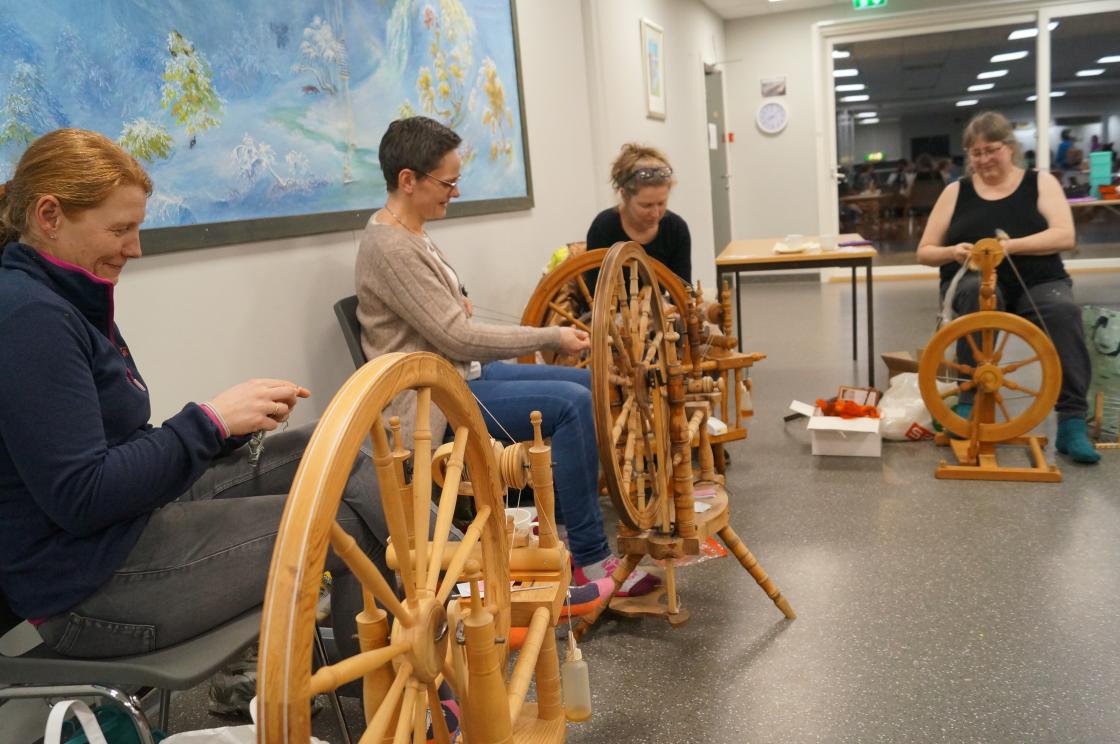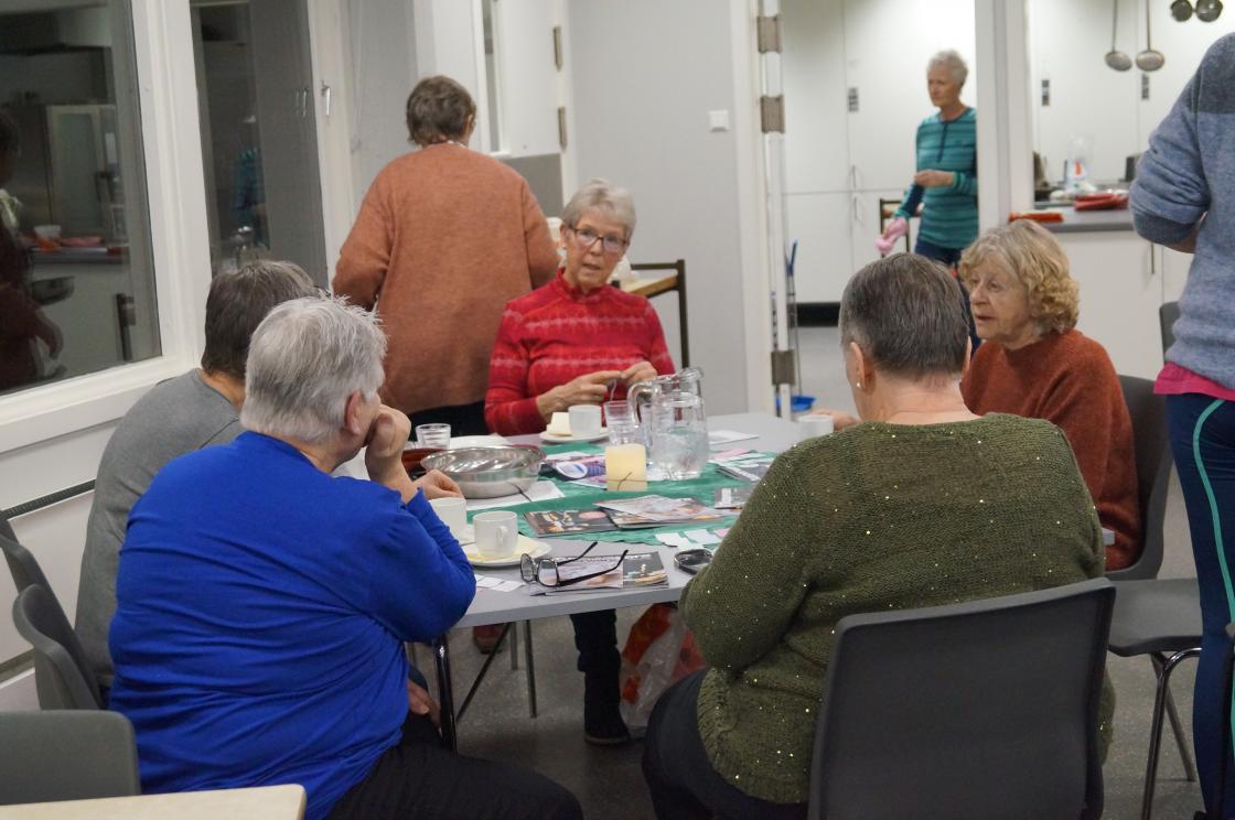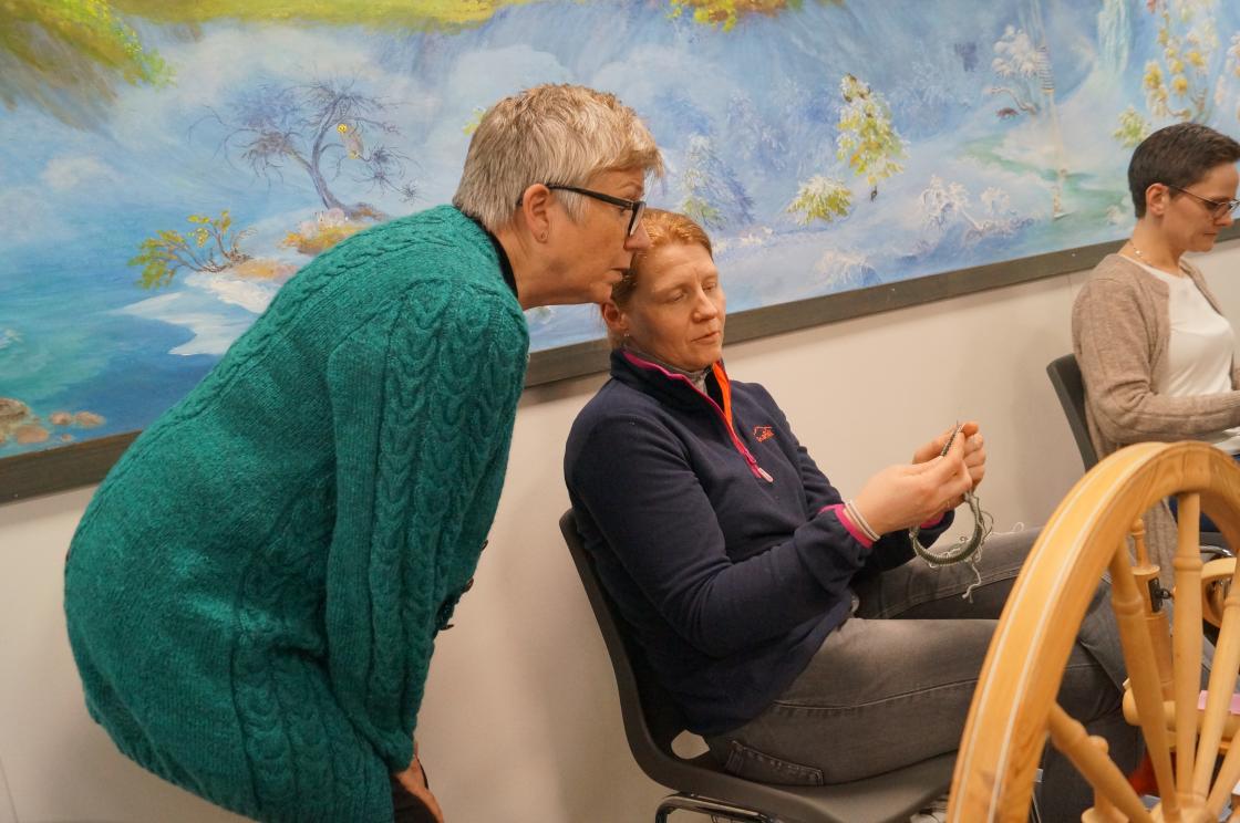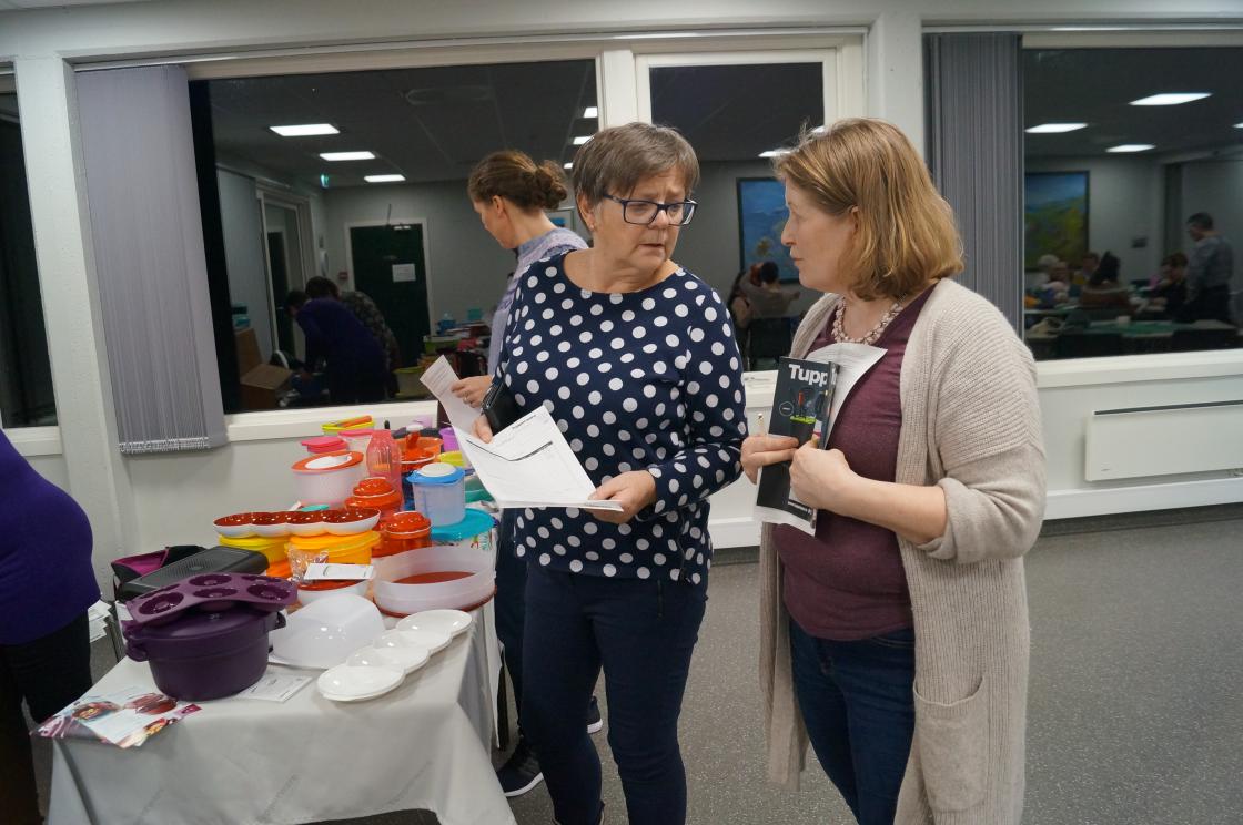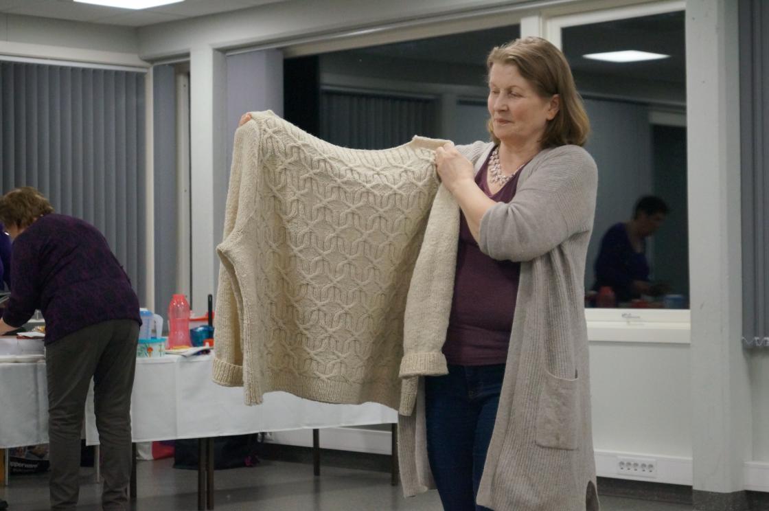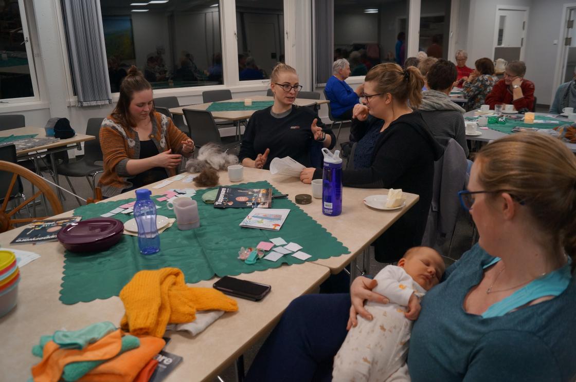 Ja, så har vi nok ein gang hatt ein kjekk og lærerik strikkekafe i Grendahuset. Mange møtte opp, og at de unge er flinke til å komme, syntes vi er kjempekjekt! Sigfrid Olsen kom for å demonstrere Tuppeware. De fleste hadde noe de ville kjøpe. Vi fikk og gaver av Sigfrid til utlodningen vår og ein flott kasse med frukt og snop fikk vi av Joker ved Eivind Tokheim. Alltid kjekt med litt utlodning. Takk til de flinke "spinnedamene" med rokkene sine som møter opp hver gang. Sjølvsagt hadde vi kaffe og vafler til salgs denne gang også. Praten gikk livlig rundt bordene.