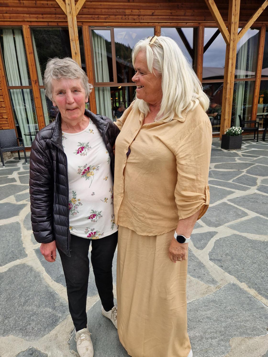 Kari og Margreta poserer for fotografen.