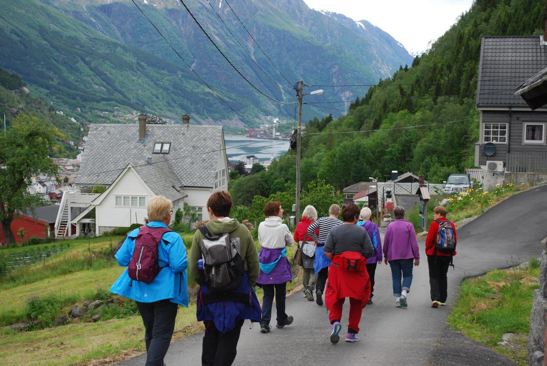 Tysdag 12. juni var Skare Bygdekvinnelag på tur. Ti av medlemmene møttes i Skarsmo og drog så til Odda. Vi parkerte bilane på Almerket og starta gåturen ved Gategrillen. Det er rydda til ein flott vandrevei langs elva Opo etter storflaumen i 2014. For nokre av oss var det fyrste gongen med gjekk turen. Det var fint turver og ein flott tur opp dalen til Vasstun- Det er gjort eit imponerande arbeid langs elva. Litt spesielt å sjå endringane etter flaumen.Ved Vasstun runda me og gjekk ned att mot sentrum over Mannsåker. Det er høgt og fint å sjå sentrum ovantil. Gardane og husa nedover Mannsåker låg velstelte og fine. Hjøllo er særs vakkert- Attende i Odda sentrum gjekk me på kafe og nytte god og velfortent pizza og anna . Praten gjekk rundt borda og me var veldig einige om at turen og dagen var særs vellukka.