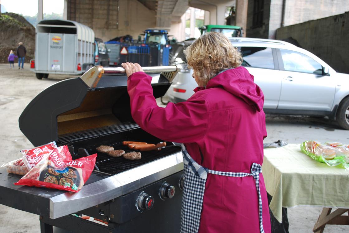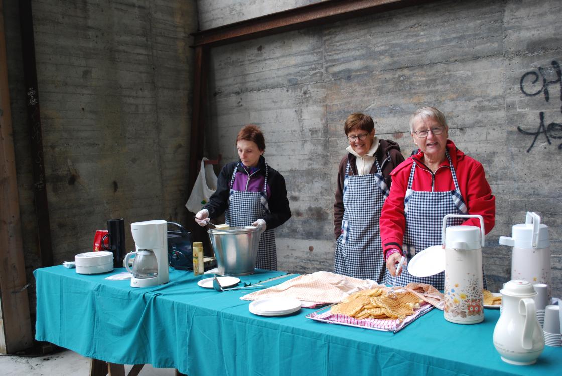 Me solgte nysteikte vafler og kaffi. Me grilla og pølser og karbonader som me solgte.