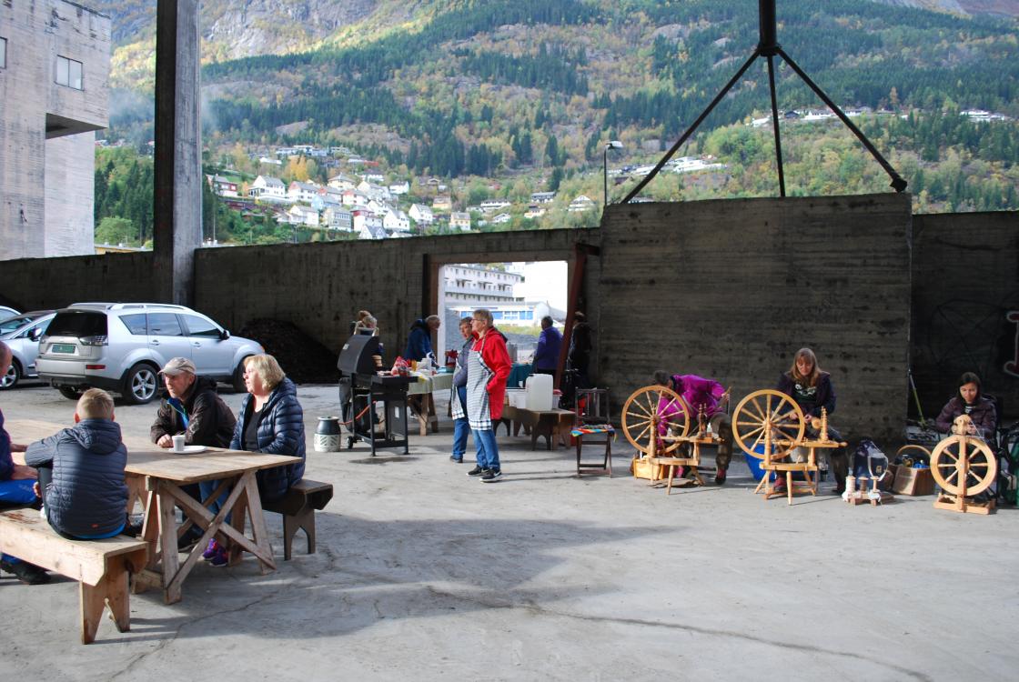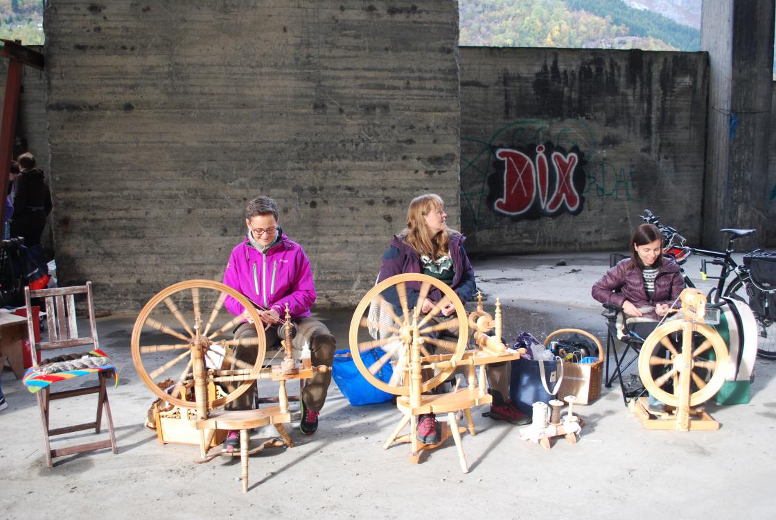 3 "spinnedamer" var der også med rokkane sine og dei spant fint garn. Kjekt for publikum å få se rokkane i bruk..