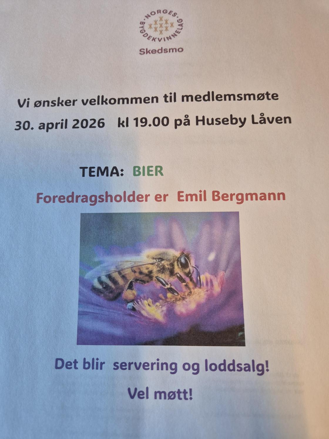 Forside Foredrag om Bier Medlemsmøte om Bier Medlemsmøte 30 april kl. 19.00 på Husebylåven Skedsmo Superbruker 1 · 28. april, 2026 Like 3 Del på: