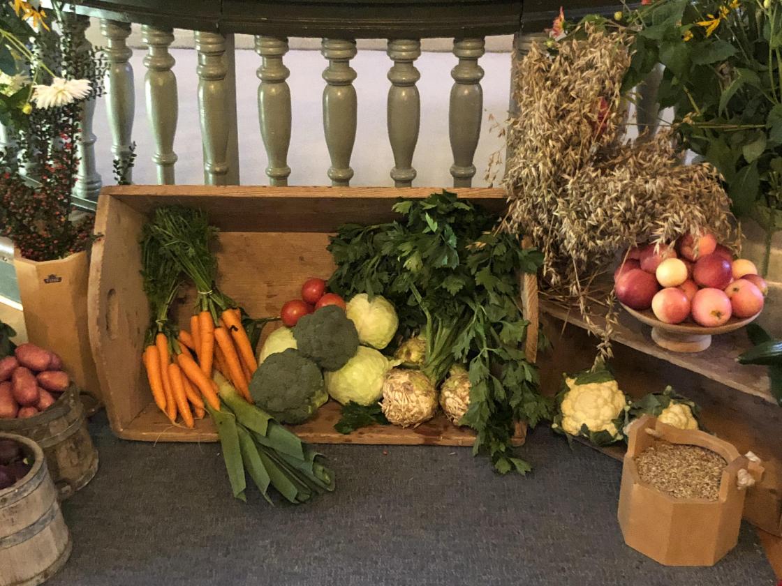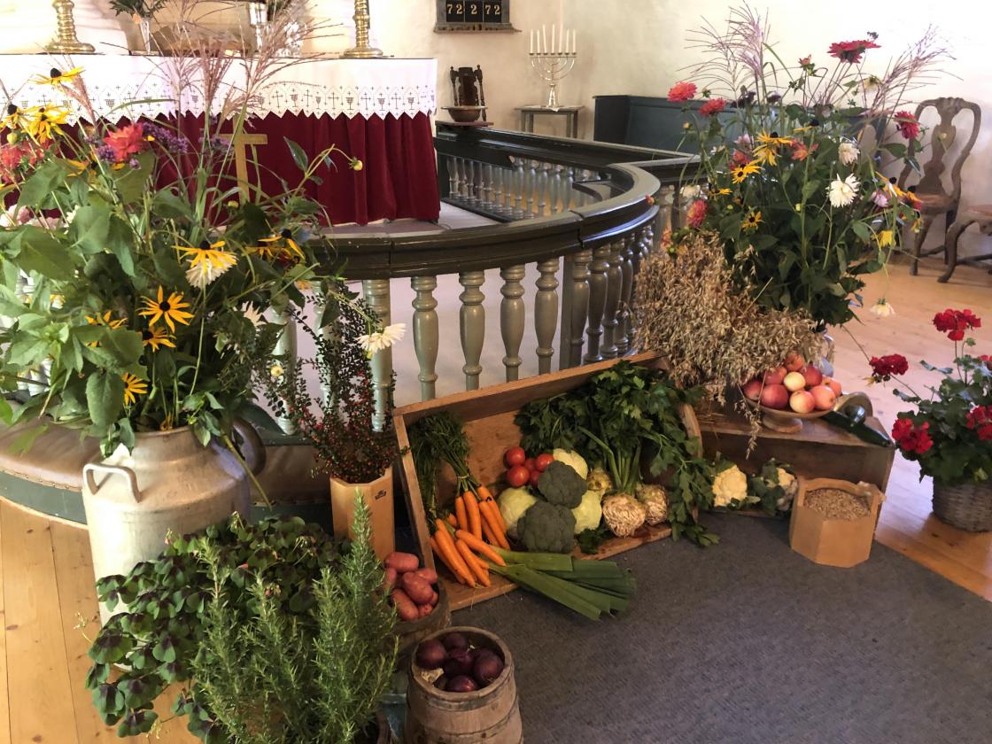 24. september var det høsttakkefest i Skjeberg kirke. Inger Johanne og Ingunn fra Skjeberg Bygdekvinnelag pyntet kirken til fest