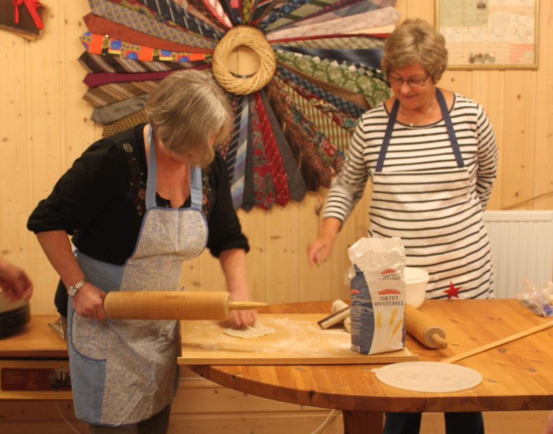 Anne Berit Mathisen kurset oss i flatbrød. Det ble kjevlet og stekt på takke. Markedslefse, norlandslefse og rømmebrød stod også på menyen denne dagen.