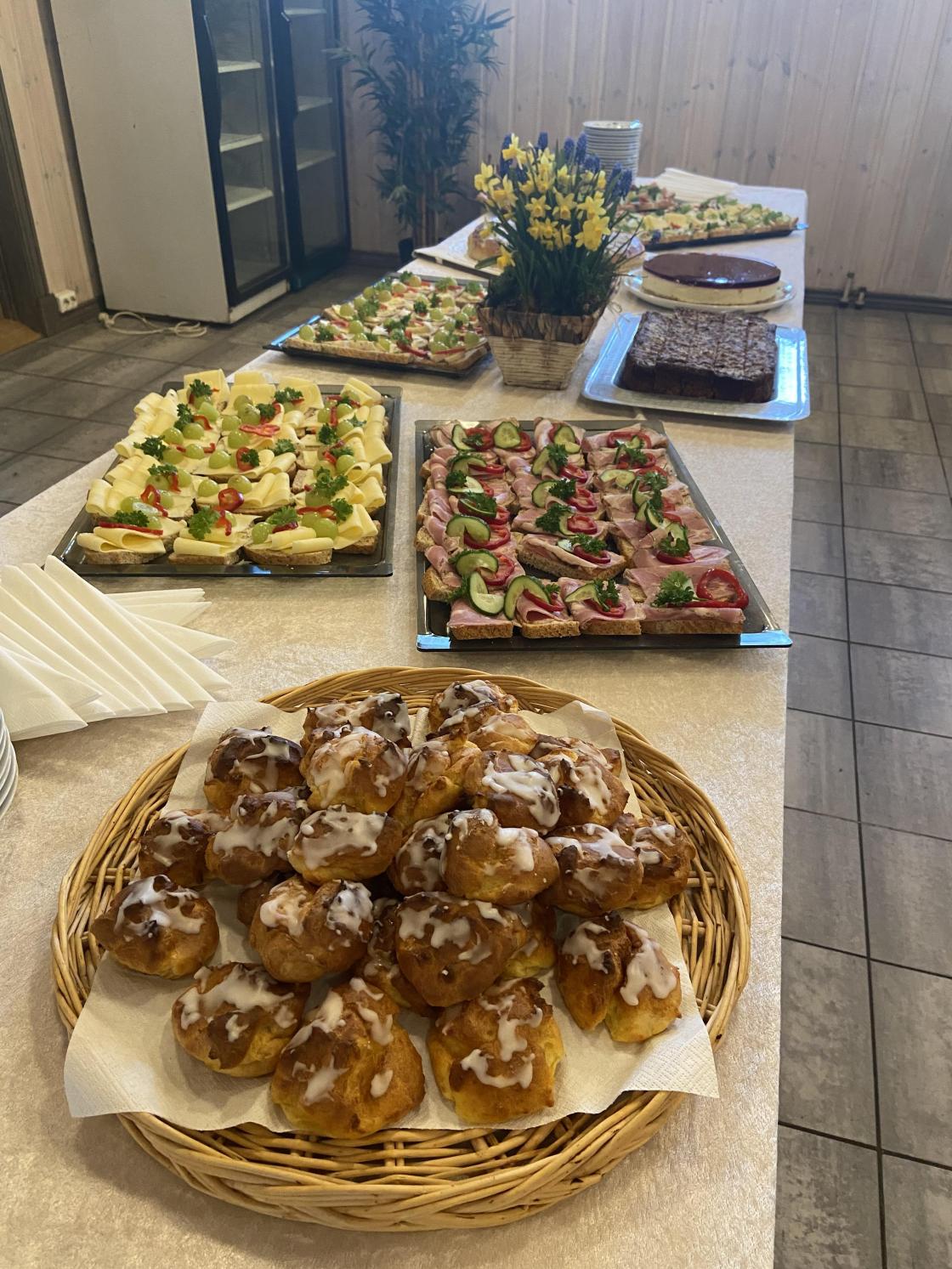 Det ble servert deilig kveldsmat med kaffe og kaker og som vanlig utloddning hvor kveldens hovedpremie var en stor flott blomsterampel.