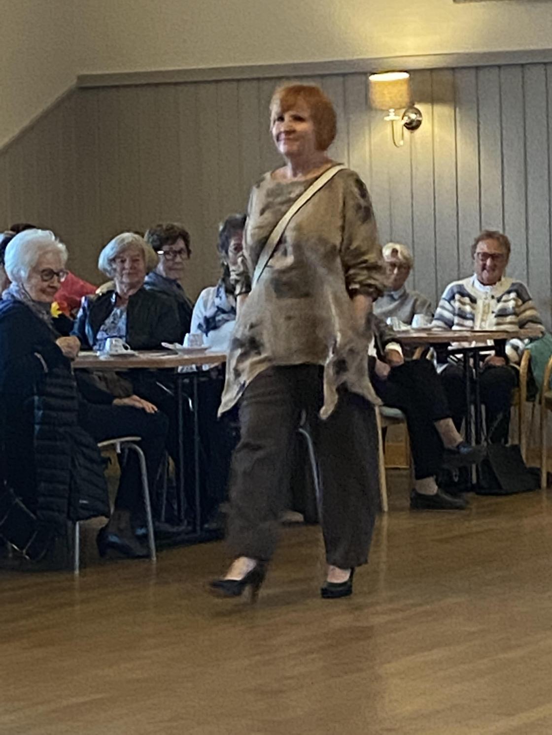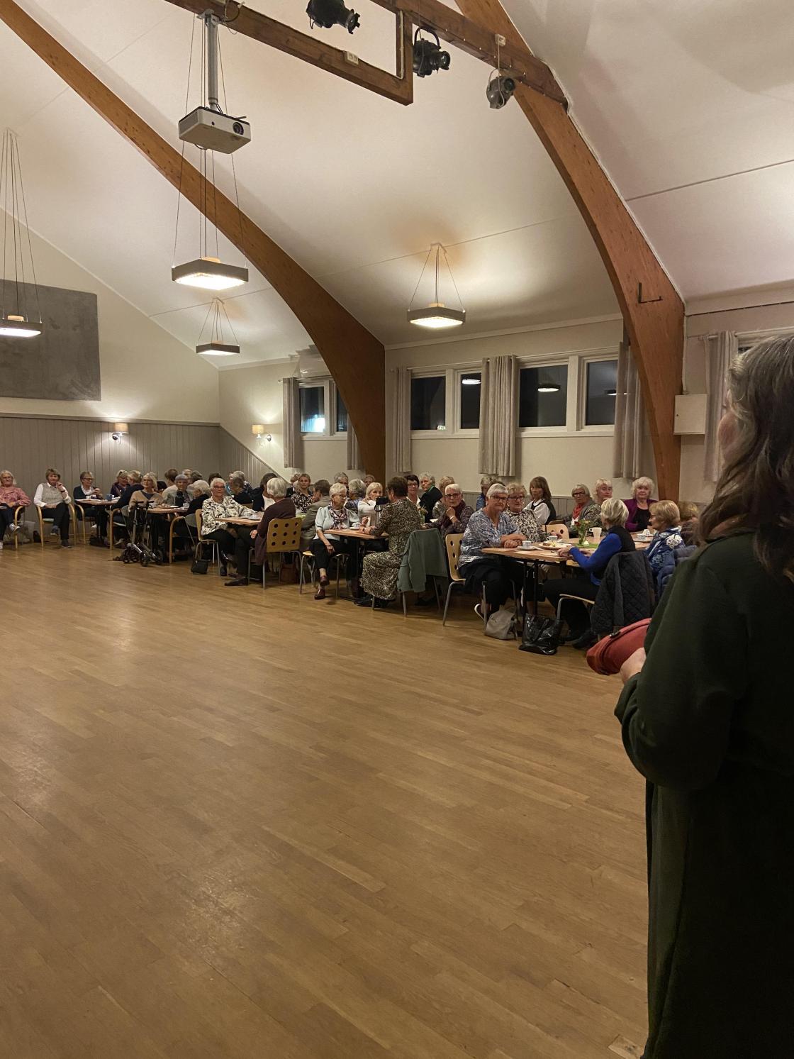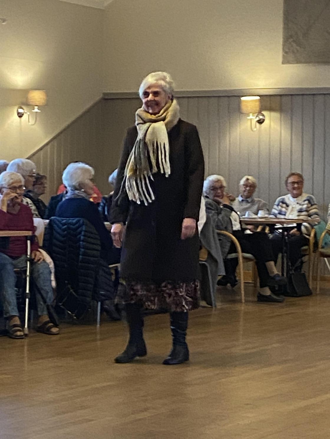 Det var mange blide damer som hadde tatt turen til Folkvang denne kvelden for å bli inspirert fra Linnea Shop fra Råde. Dem hadde med seg flotte modeller som viste oss høstmote og hvordan ting kan styles opp og ned.