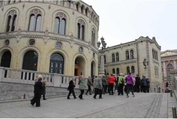 Det var en full buss med kjekke damer som tok turen til Oslo og besøkte Stortinget. Ingjerd Schau tok imot og hadde en interessant omvisning for oss.