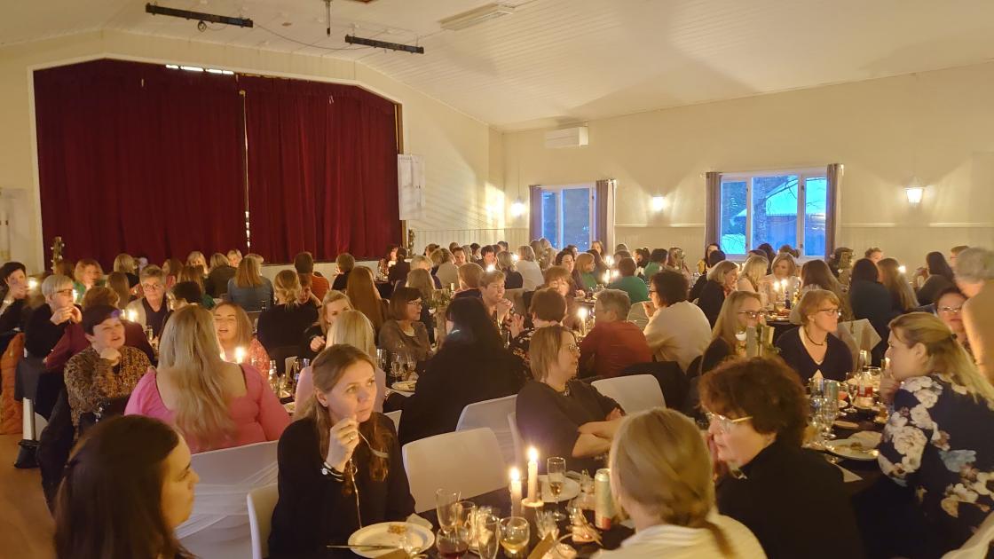 Vi var veldig glade for å kunne invitere til damenes aften igjen, etter to år uten. På lydnivået hørtes det ut som det var noe gjestene hadde lengtet etter. 120 feststemte damer møtte opp til en hyggelig kveld. Fra vi åpnet billettsalget, tok det bare 9 timer til alle billetter var utsolgt.