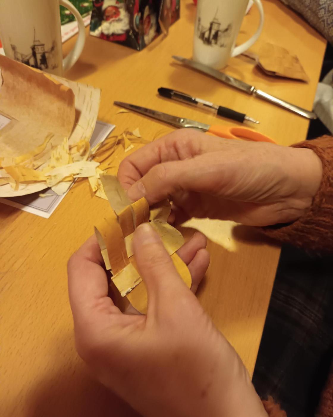 Vi flettet kurver, vi brukte stoff, glanspapir og bjørkenever.