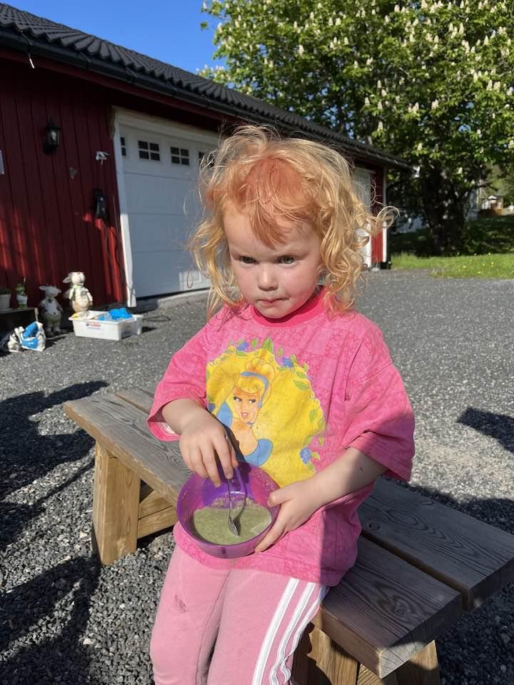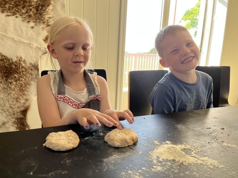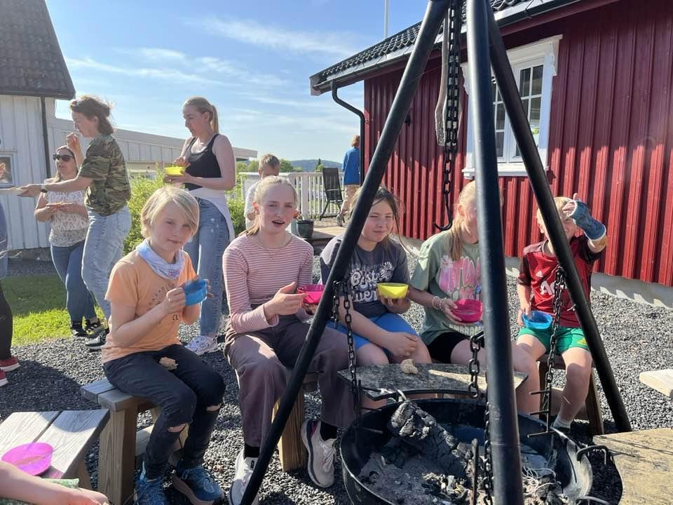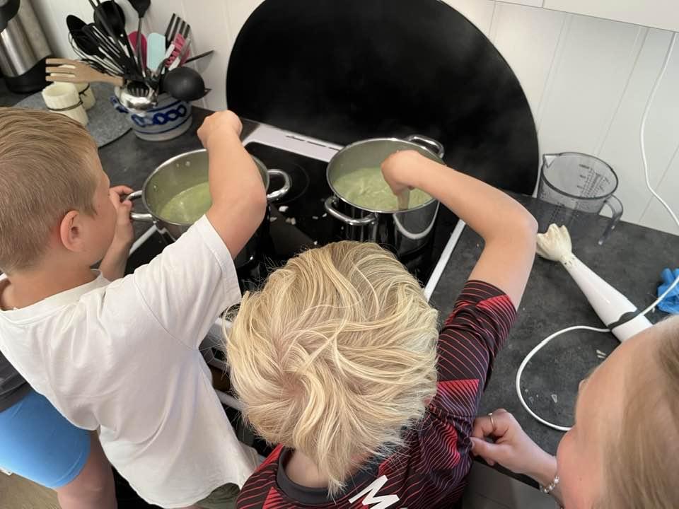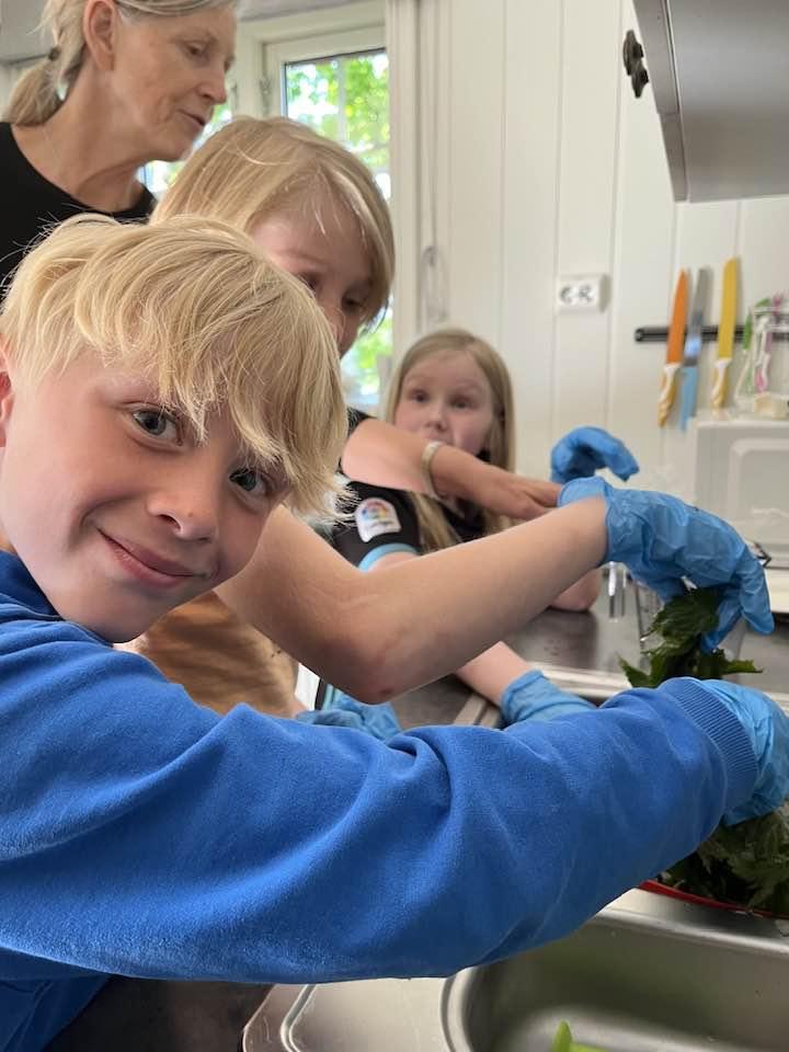 Den andre kurskvelden lagde vi neslesuppe, barna hadde plukket nesle og tatt det med seg. Ingunn fortalte også litt om nesleplanta og om småkryp som trives på den. Hun hadde tatt med seg en liten duk, denne er laget av neslefiber, det var det ingen av barna som klarte å gjette, moro og overraskende. Til neslesuppa ble det laget scones med bjørkesaft som eneste væske og med knust tørket brennesle. Noen av barna var skeptiske til å smake på maten, de trodde de kom til å brenne seg i munnen, mens andre var spente og gledet seg veldig. Det endte med at alle smakte, og veldig mage av barna likte det kjempegodt og forsynte seg flere ganger. Det var ingen som brant seg, så vi konkluderte med at det var helt trygt å spise behandlet neste.