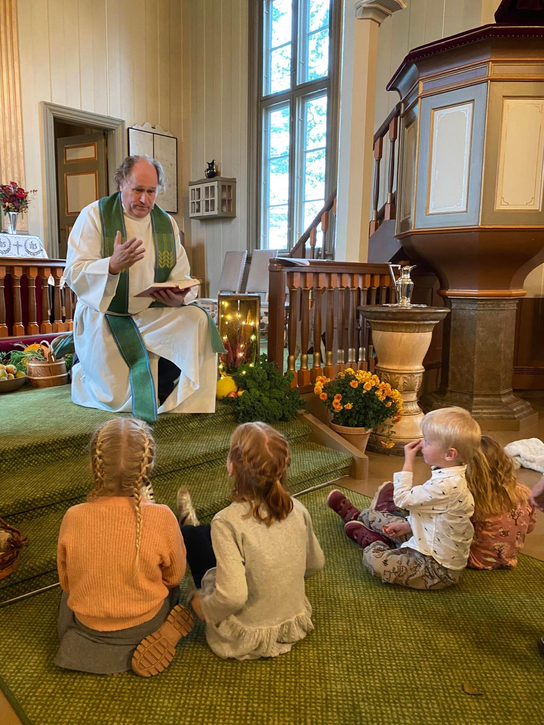 Vi arrangerte høsttakke gudstjeneste i Kilebygda kirke i samarbeid med Kilebygda og Solum menighet. Kirken pyntet vi med diverse frukt, grønnsaker, blomster, lys og annet. Noen av barna som har vært med i prosjektet vårt, Barnas kjøkkenhage, bar egenproduserte grønnsaker inn i kirken. De svarte også gladelig på prestens spørsmål om grønnsaker og annet. En riktig trivelig gudstjeneste for både små og store. Etter gudstjenesten var vi på Skogheim forsamlingslokale. Der var det bevertning med pølser, sveler, kaffe og saft. Det var også bildefremvisning og informasjon om barnas kjøkkenhage, og barna deltok aktivt. En quiz om grønnsaker viste at det var mye kunnskap blant de nærmere 60 fremmøtte. Eller var det er fint foredrag om grønnsaksdyrking av en lokal gartner, og vi hadde utlodning med mange gevinster. En hyggelig dag med fokus på: sammen om bærekraftig matkunnskap.