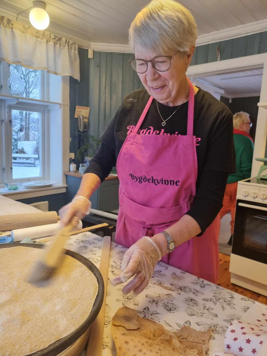 I samarbeid med andre lag og foreninger, ble det arrangert Julegård på Vollene. Vi i bygdekvinnelaget stekte og solgte sveler. Inne i hovedhuset sto vi og lagde og solgte flatbrød.