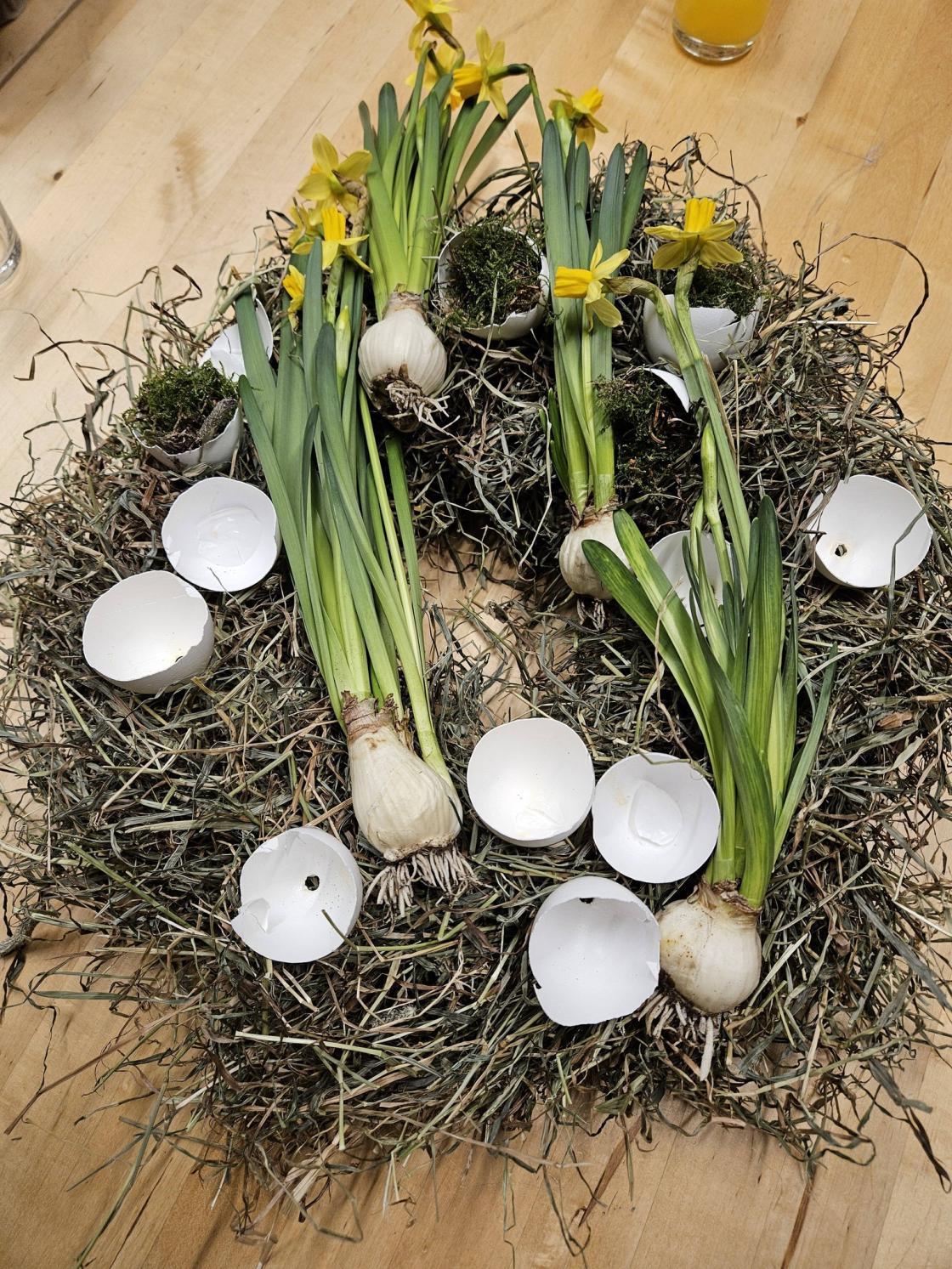 Krestine fra Essen blomster viste de 40 damene som kom hvordan man enkelt kan lage påskedekorasjoner av høy, eggeskall og avispapir. Det er kunn fantasien som stopper deg.![]()