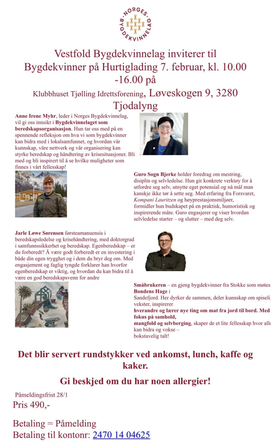Forside Småbrukeren Sygruppa Utilgjengelig Feb 07 Sat Stokke Bygdekvinnelag Bygdekvinner på Hurtiglading Klubbhuset Tjølling Idrettsforening lør 07.02.2026 10:00 - lør 07.02.2026 16:00 Del på: