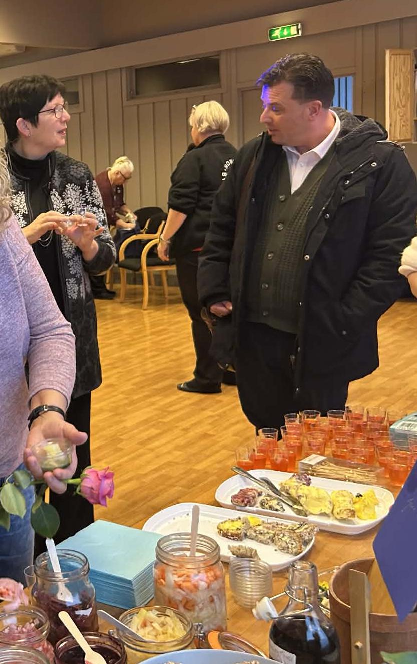 Til slutt var det damene fra Stokke og Småbrukeren sin tur. Tone snakket om bli kjent treffene som alle nye medlemmer inviteres på i bryggerhuset, og Laila delte bilder og informasjon om hvordan Småbrukeren startet som en idè mellom tre damer om å dyrke sammen, til å bli en gruppe som mange har stor glede av, og om deltakelse i forskningsprosjekt på USN, hvor bla Jarle Løwe Sørensen er vår samarbeidspartner som ønsker å bruke de praktiske tingene Småbrukeren gjør inn i sin forskningen. Dagen ble avsluttet med et fargerikt bord som bugnet av ulike smaksprøver!