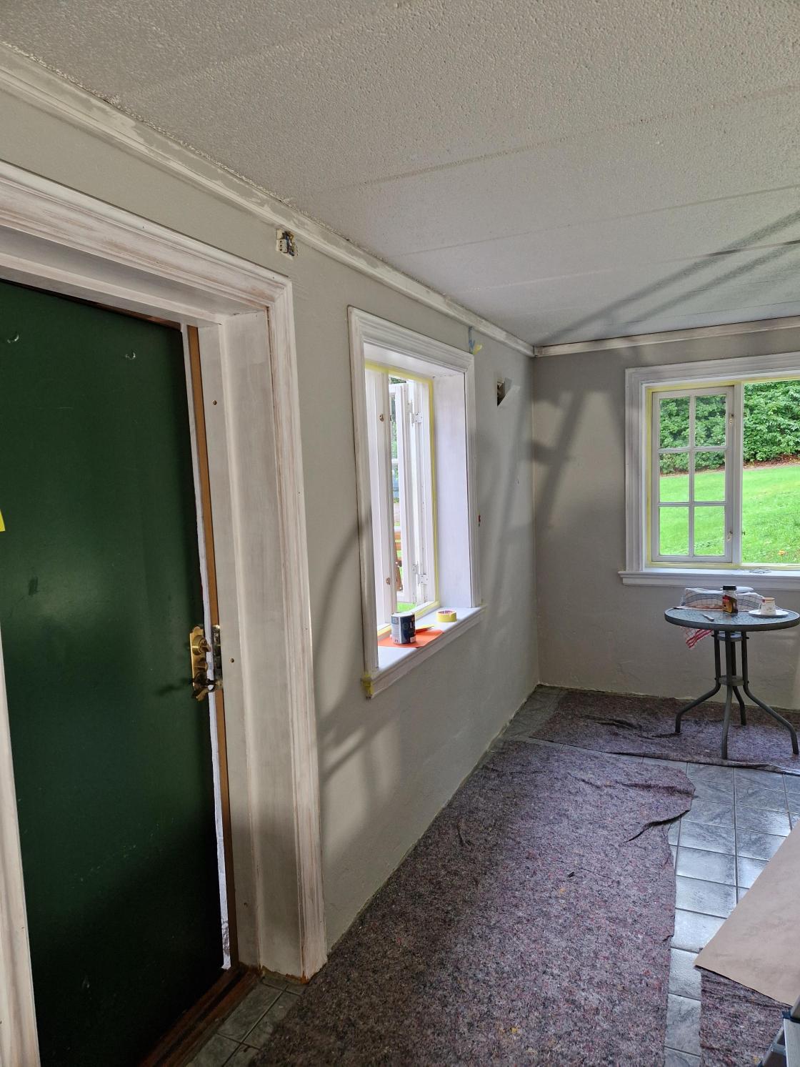 Vi er 17 personer som hittil har bidratt med ca. 200 timer totalt på oppgradering av bryggerhuskjelleren på Stokke bygdetun. Vi har ryddet, kastet, vasket, pusset og malt tak, vegger, dører og vinduer i en og samme gråtone.