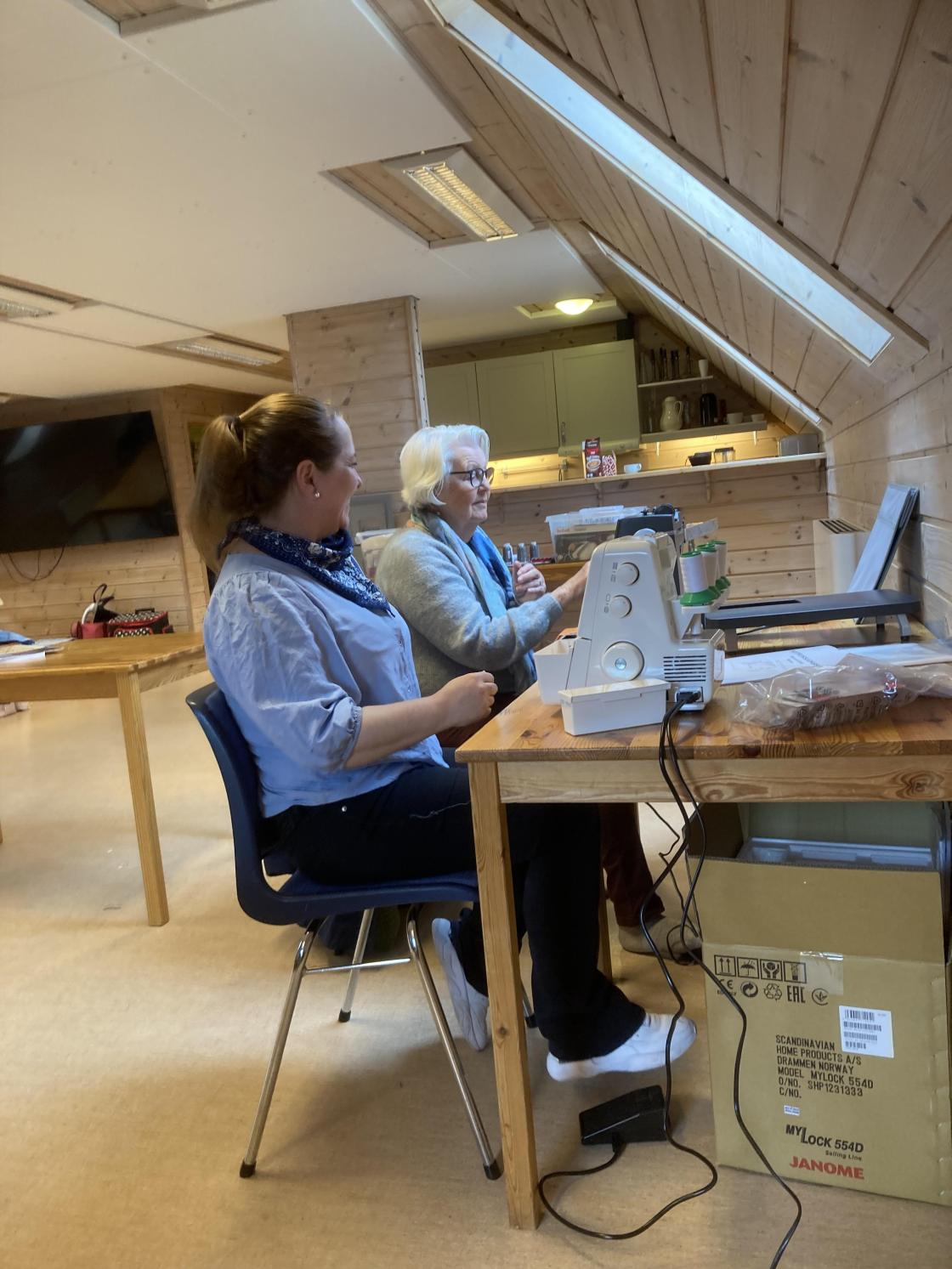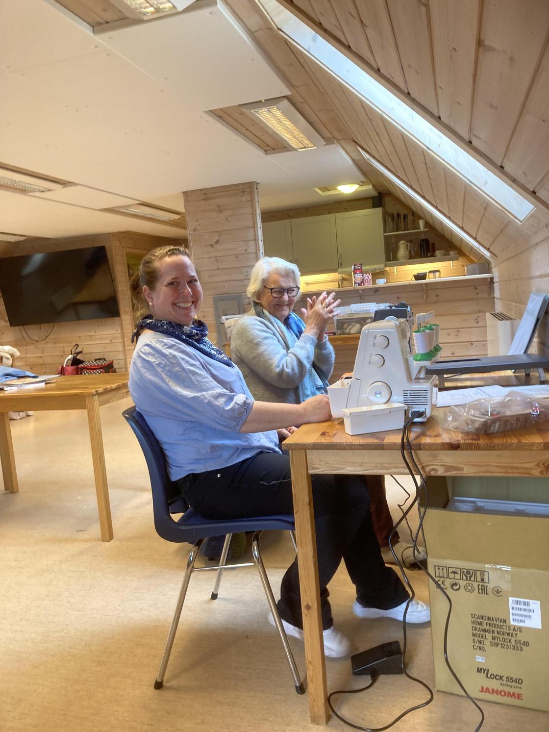 Det var også stor stas å endelig få på plass de nye symaskinene som er kjøpt inn for gavemidler fra Skagerak Sparebank! Har du lyst til å lære å sy eller prøve deg på overlockmaskin, så ta en tur på neste sytreff 9.mai.
