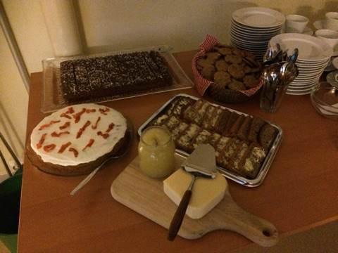 Eirin hadde med seg Surdeigbaka speltbrød og himelsk sjokoladekake. Anne Merethe hadde bakt Gulrotkake og Ellen hadde bakt Cookies med hakket peanøtter, mandler og mørk sjokolade.