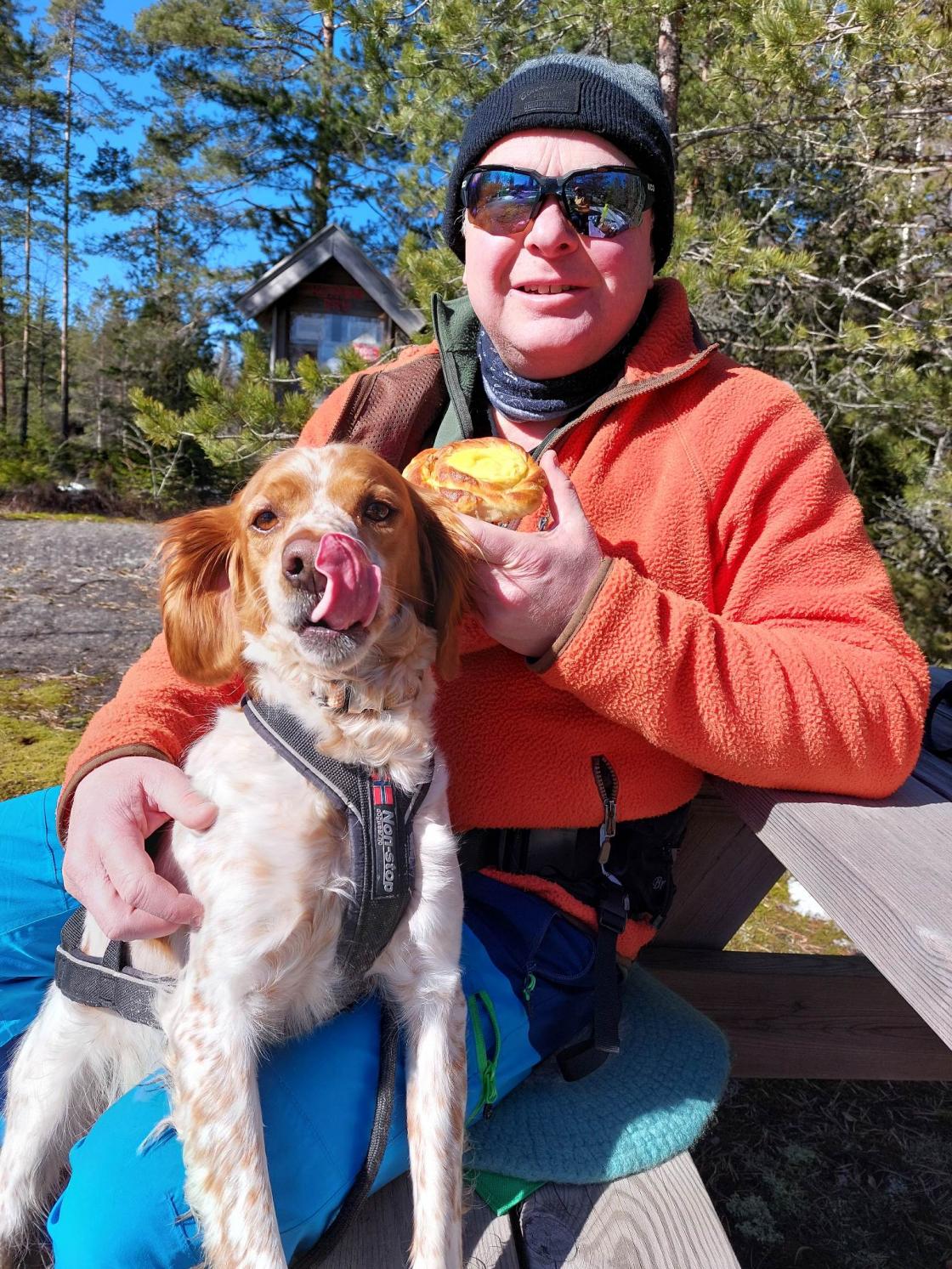 Så var tiden inne for å nyyyte baksten og kaffen vi hadde i sekken. Ved Klypen bru var det satt ut en piknikbenk der vi slo oss ned for å hvile beina og nyte varmen fra sola 🌞