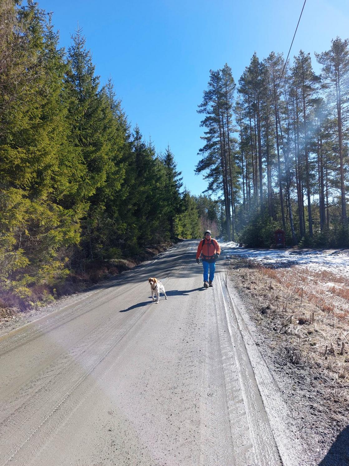 Det er en fin vei, med lite trafikk som passer fint for turer med vogn og små føtter. De få bilene vi møtte kjørte veldig fint og tok hensyn til oss som var på tur. 🧑🦽🚴