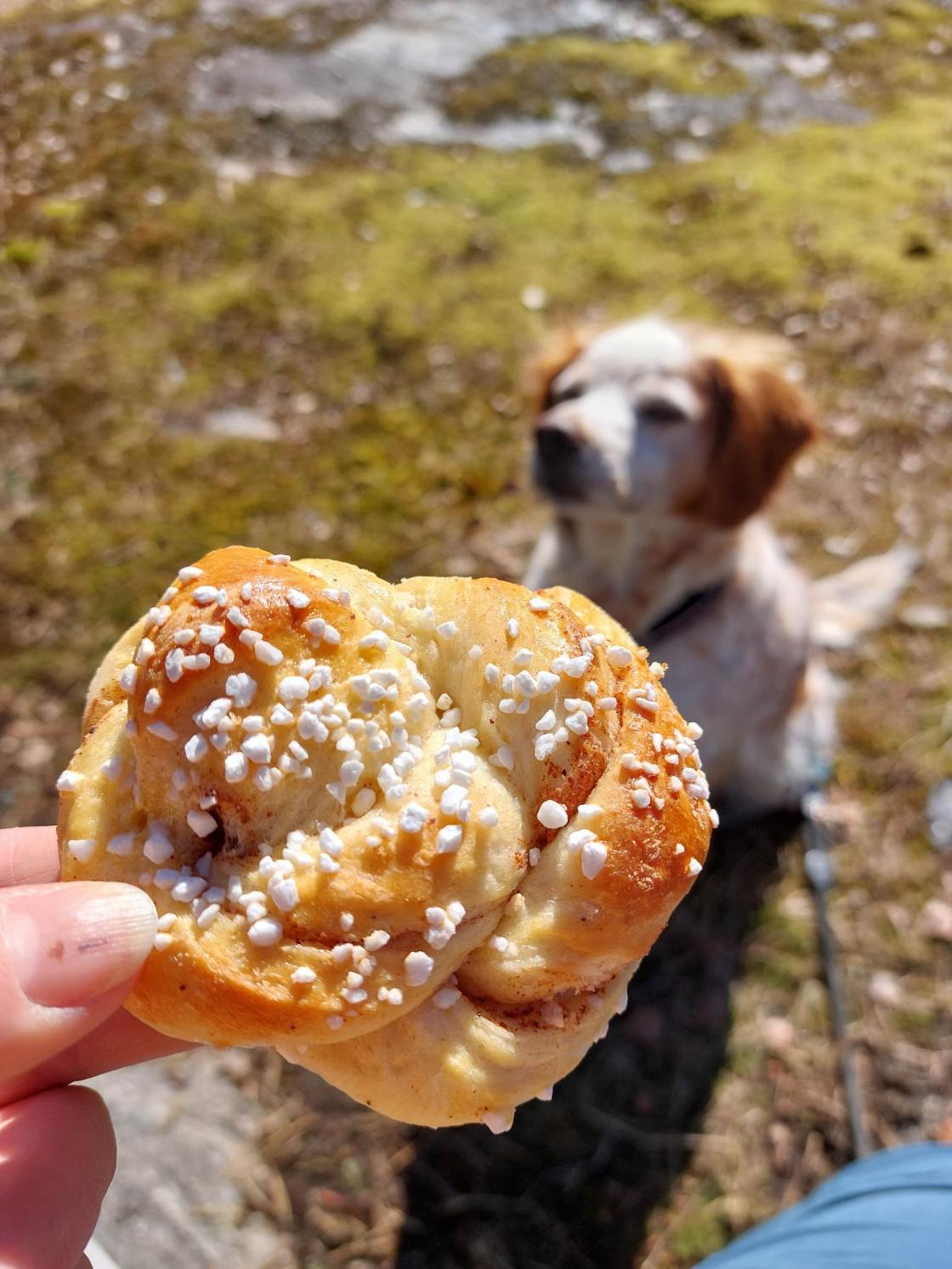 I dag gikk turen rett bortenfor der vi bor, nemlig tur langs Rosveien. Men vi måtte ha med oss noe godt til kaffen så først dro vi innom Grethes Gårdsbutikk i Svinndal https://www.facebook.com/profile.php?id=100063621000522 for å kjøpe nystekte winerbrød og og kanelsnurrer som Marit baker, ja nå var det bare å glede seg til vi skulle ta oss en rast.