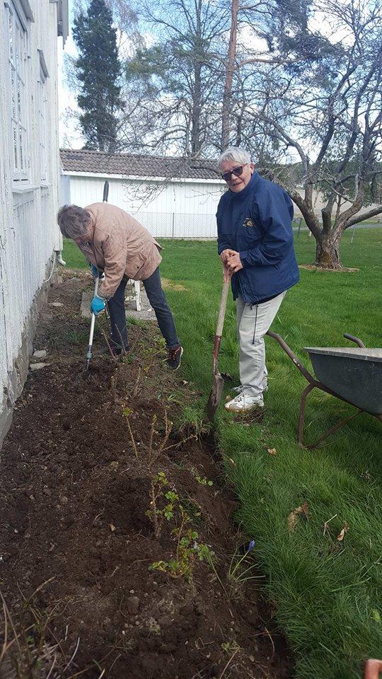 Vi var samlet en fin gjeng flittige hender for å lage hagen på Klokkergården fin til 17.mai og sommeren :-)