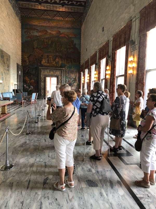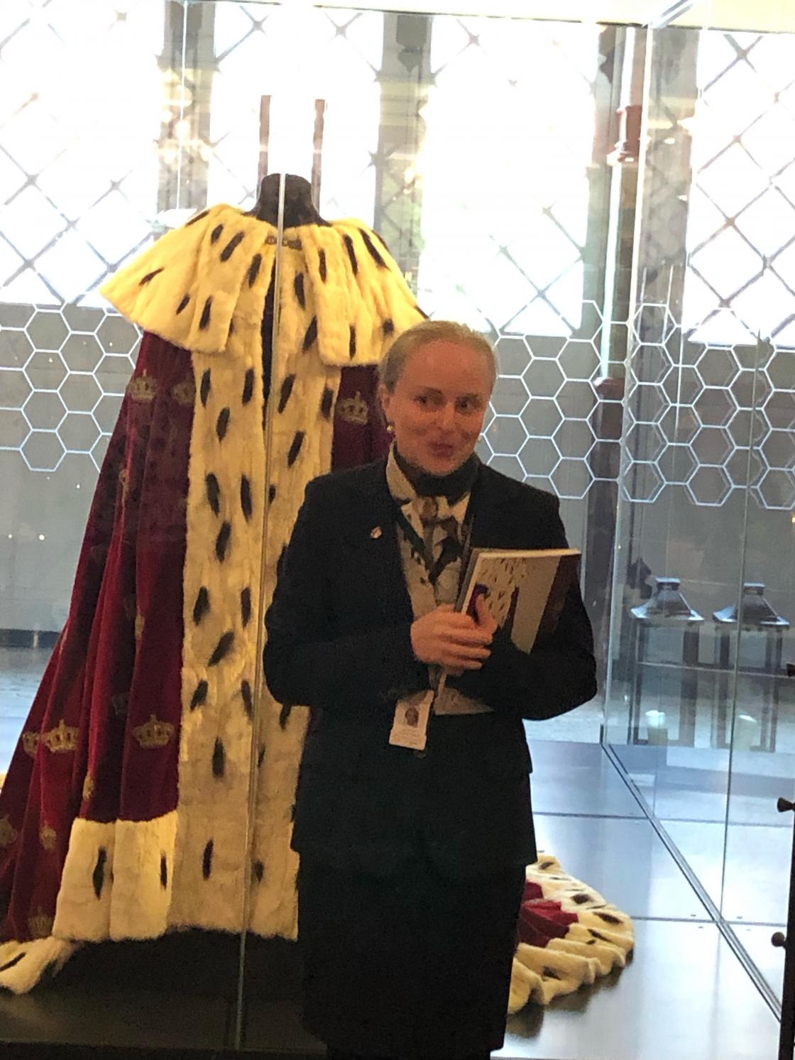 Så dro vi til Dronning Sonjas kunststall hvor vi hadde omvisning der vi bl.a fikk se Dronning Maud kroningskappe fra 1906 og Kongens Buick Roadmastet A1 som ble brukt på Frigjøringsdagen i 1945.