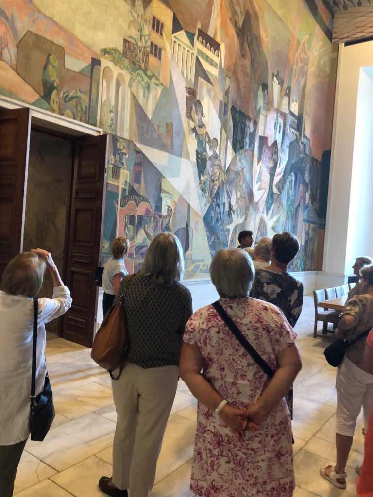Først gikk ferden til Oslo Rådhus hvor vi fikk flott omvisning. Etterpå gikk vi på Theatercafeen hvor vi fikk servert en cæcar salat, sorbe og kaffe.