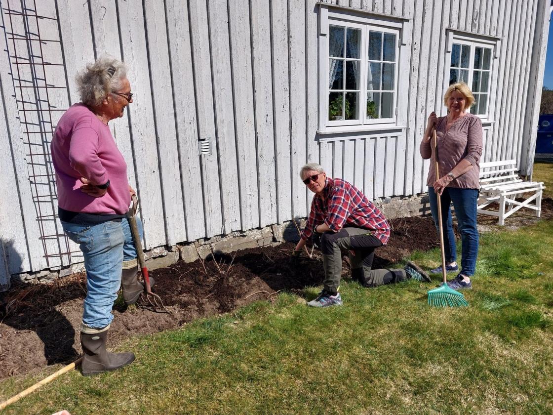 Onsdag møttes noen damer og startet på hagen da finværet kom, og lørdag 22.april gjorde vi hagen ferdig slik at alle som ferdes forbi og de som bruker huset kan nyte både huset og hagen.