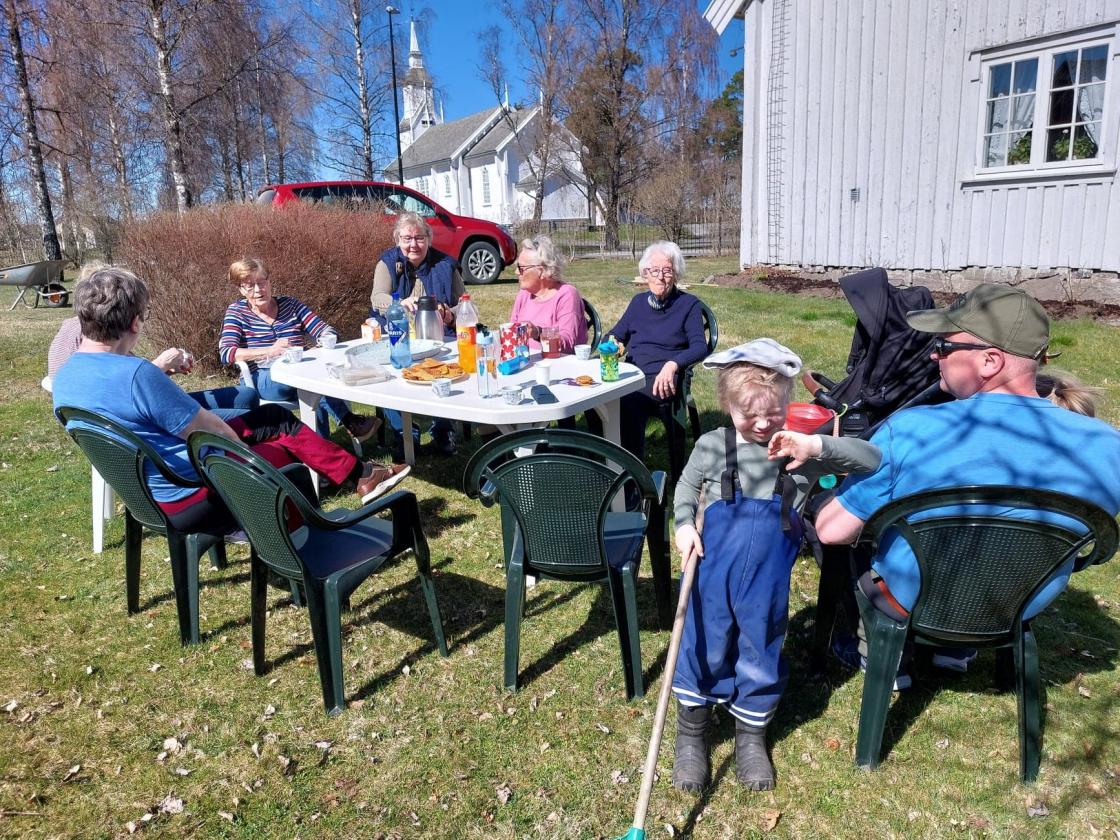 Ja nå har en flittig gjeng fra både Helselaget, Klokkergårdstyret, Vevstua og oss Bygdekvinner gjort det fint inne i vårt koselige hus og i vår hagen.