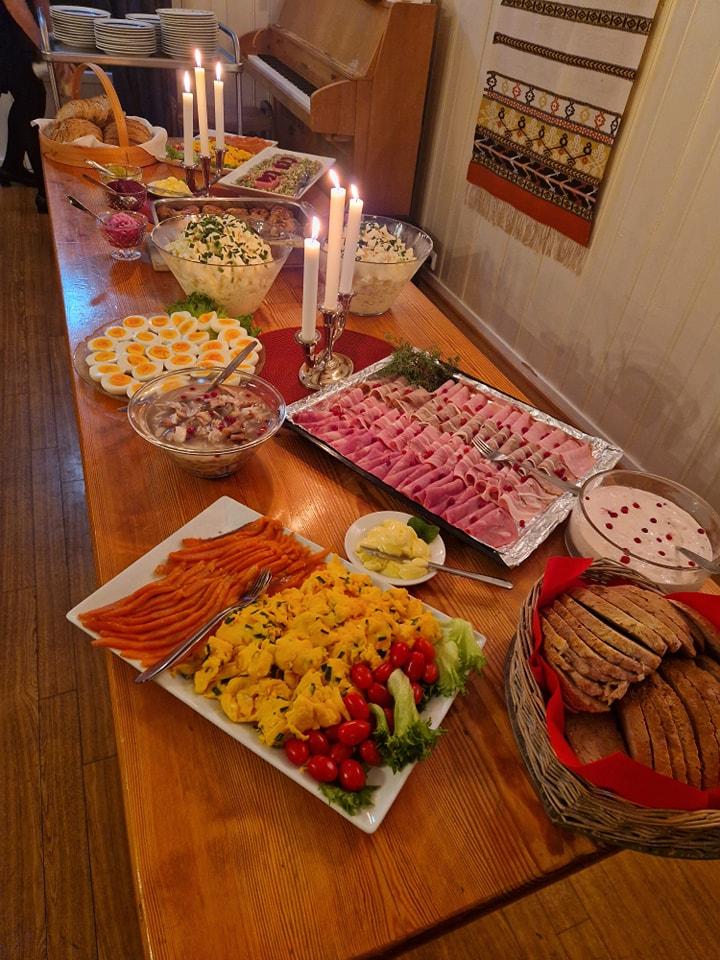 Kjøkkenkomiteen hadde stelt istand et nydelig kveldsmåltid til oss. Som vanlig hadde vi loddsalg med en mengde fine premier.