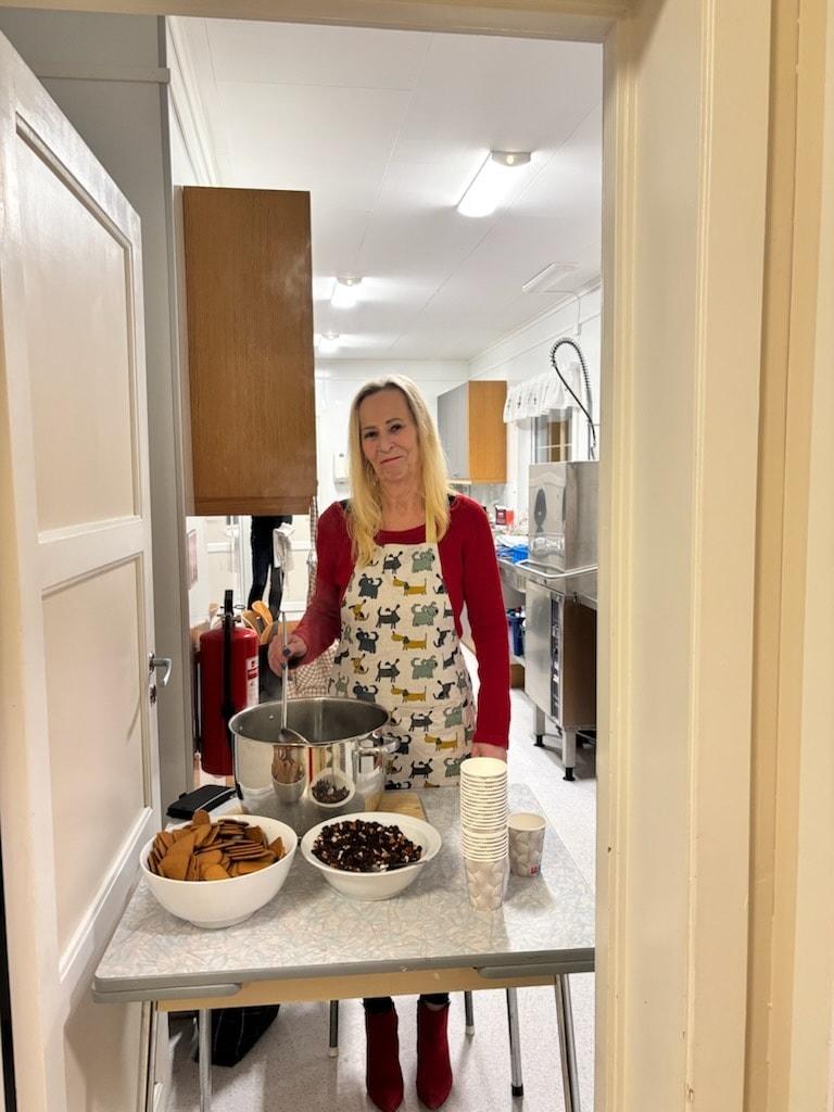 Ute tente vi bålpanna, mens gløgg og pepperkaker ventet inne i varmen (regnet stoppet heldigvis ikke julefølelsen!).