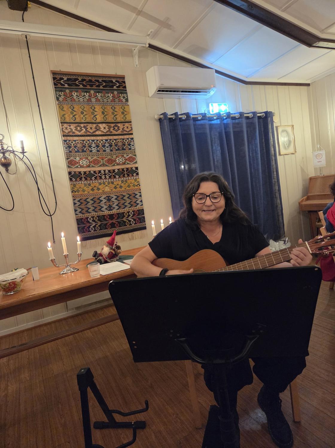 Hanne Ingersdatter skapte nydelig stemning med gitar og sang, og inviterte oss med på allsang. Det ble servert god mat, og praten rundt bordene gikk livlig og trivelig – akkurat slik en bygdekveld skal være. ![]()