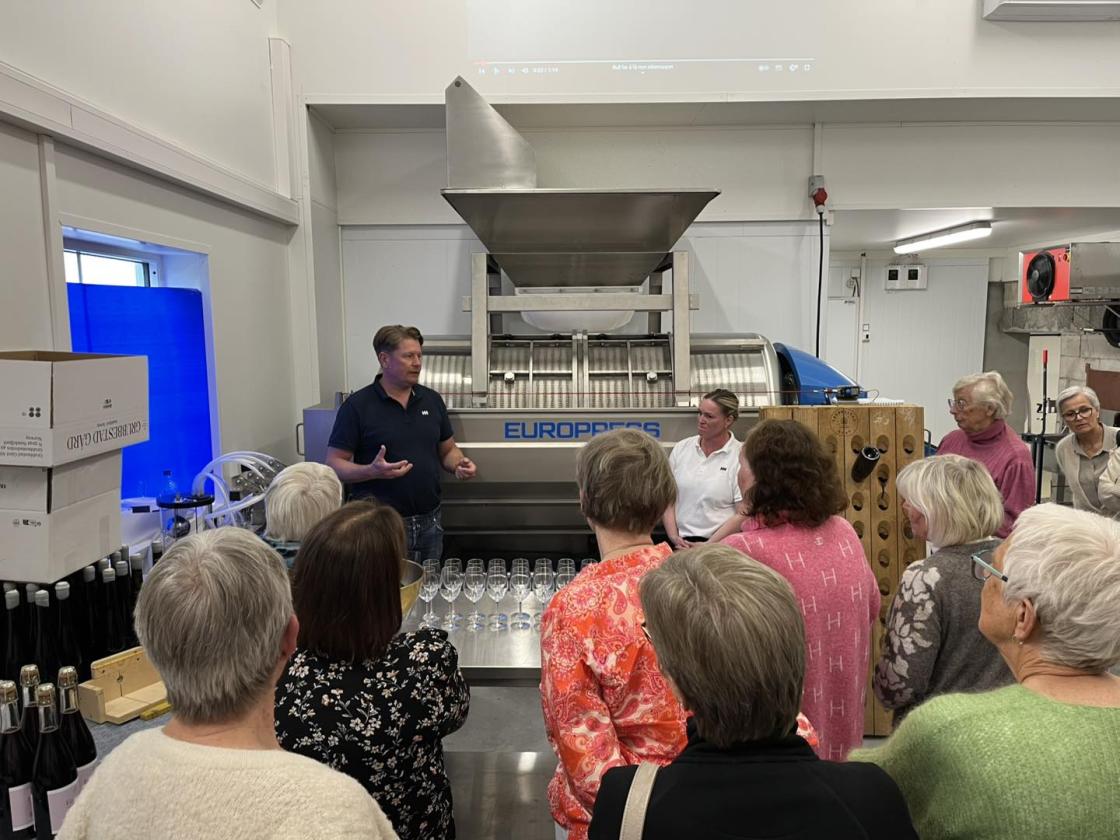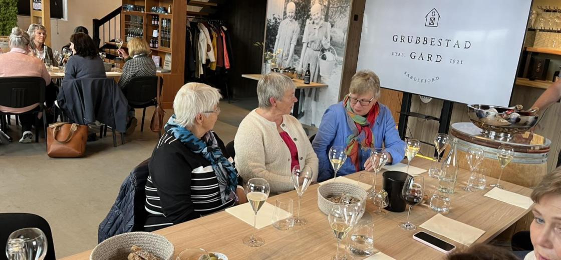 Årets sommeravslutning gikk til Grubbestad gård i Sandefjord 10 juni. Her dyrker ekteparet Cecilie og Bjarne bær og druer for vinproduksjon. Tenk at dette skjer i vårt nærmiljø!!