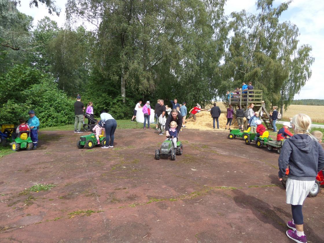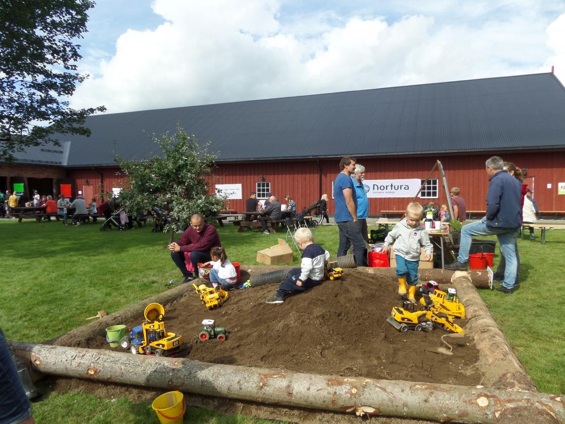 På Haug gård koste både små og store seg. Her kunne en hoppe i høyet/halmen, kjøre traktor, leke i sandkasse, huske, balansere og mye mer. Unger er glade i dyr, og på Haug gård fikk de hilse på geit, sauer, kanin, kalkun og grisene Peppa og Georg.