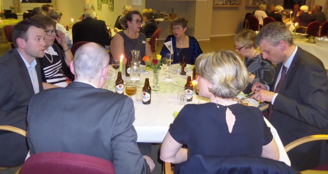 45 gjester deltok på festen;Ordfører Tom Staahle, den nye kultursjefen Jon Henrik Solhei, leder i Norges Bydekvinnelag Ellen Krageberg, leder i Akershus Bygdekvinnelag Marit Tomter, ledere fra nabobygdene og medlemmer fra laget vårt. Noen menn var også med .Leder Anne Lise Lund ønsket velkommen og fortalte fra lagets historie. Ordfører Tom Staahle hadde hyggelige ord til laget. Ledere i NBK og ABK kom også med rosende ord til 90-års jubilanten. Mange hyggelige hilsner. En hilsen med dikt av Hans Børli. Blomster og gaver vanket også. Koldbordet smakte fortreffelig.