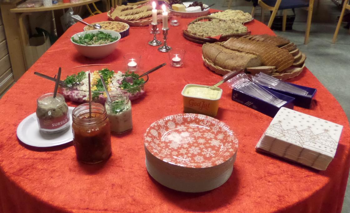 Bygdekvinnene fikk servert silderetter, pai, lefseruller og oster. Det var utlodning, og mange vant og fikk med servietter, lys eller en julestjerne med hjem.