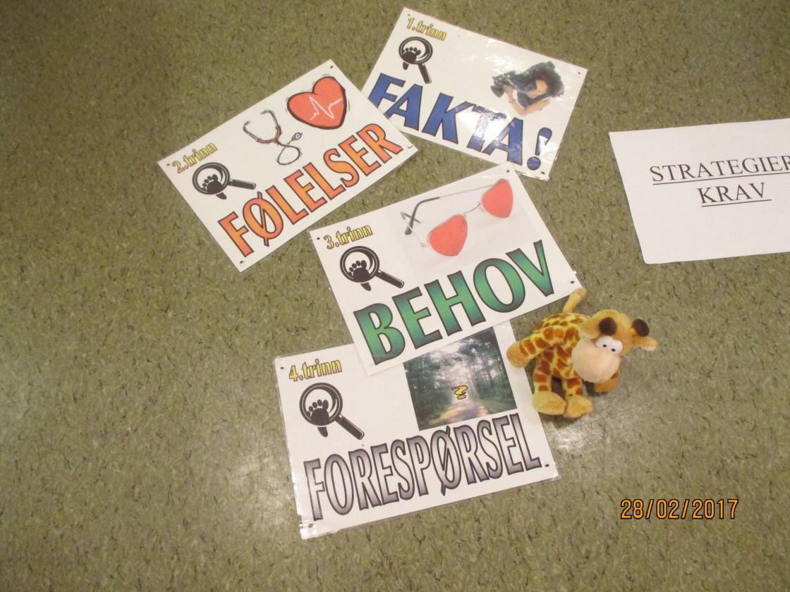 Mine følelser skal knyttes til mine behov. Vi bør skille vekk strategier og krav. Jeg har behov for å bli forstått. Vi må ta på de empatiske ørene. Da vil jeg bli forstått. Spørre om hva vil du…..