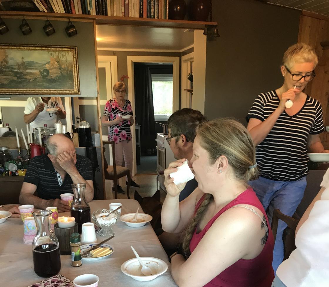 Deilig rømmegrøt fristet nok denne sommerkvelden. 18 stk og hunden «Odin» var på plass. Gjøken også - som hvert fall jeg hørte på veg til hytta. Koko koko koko
