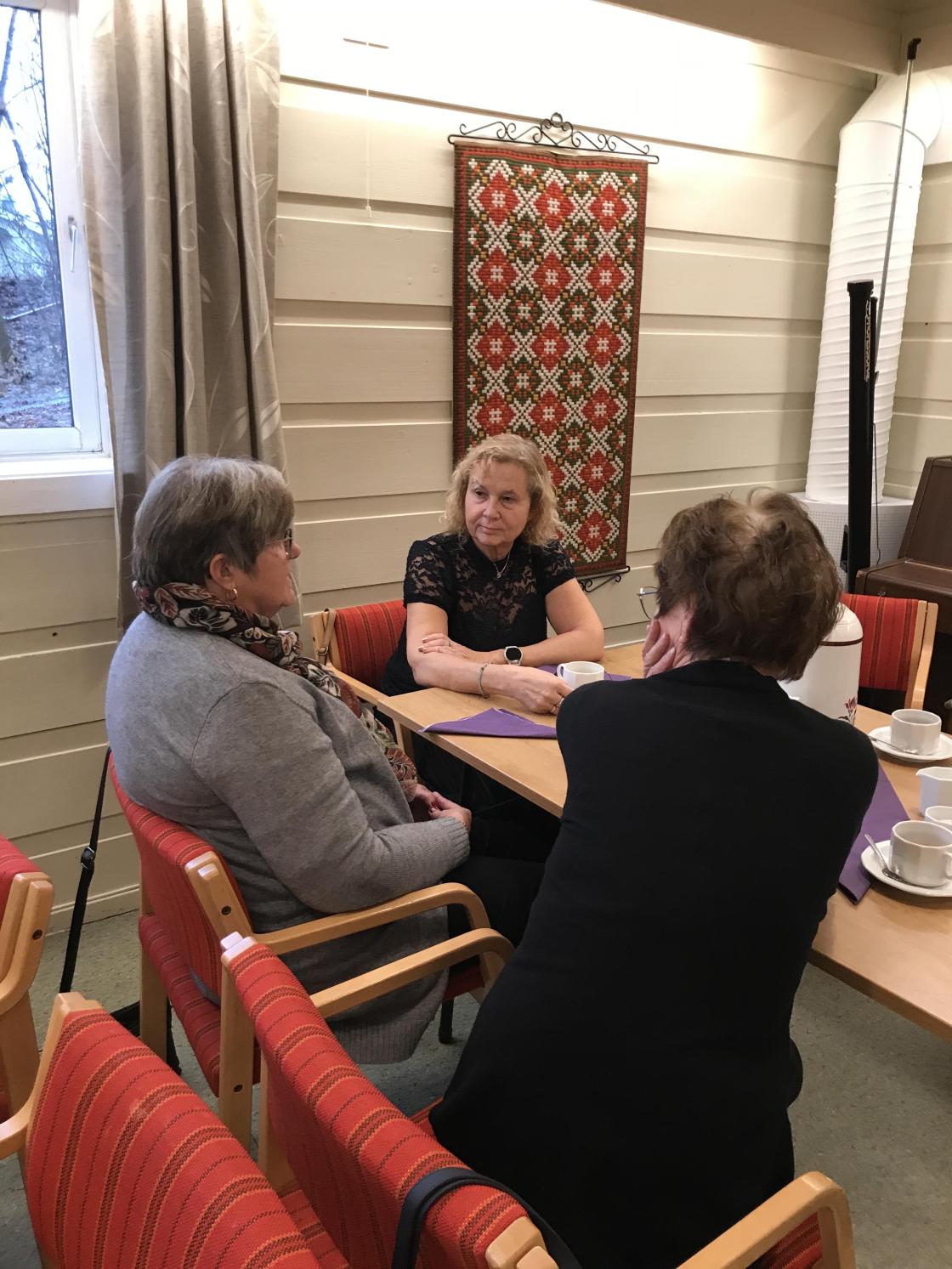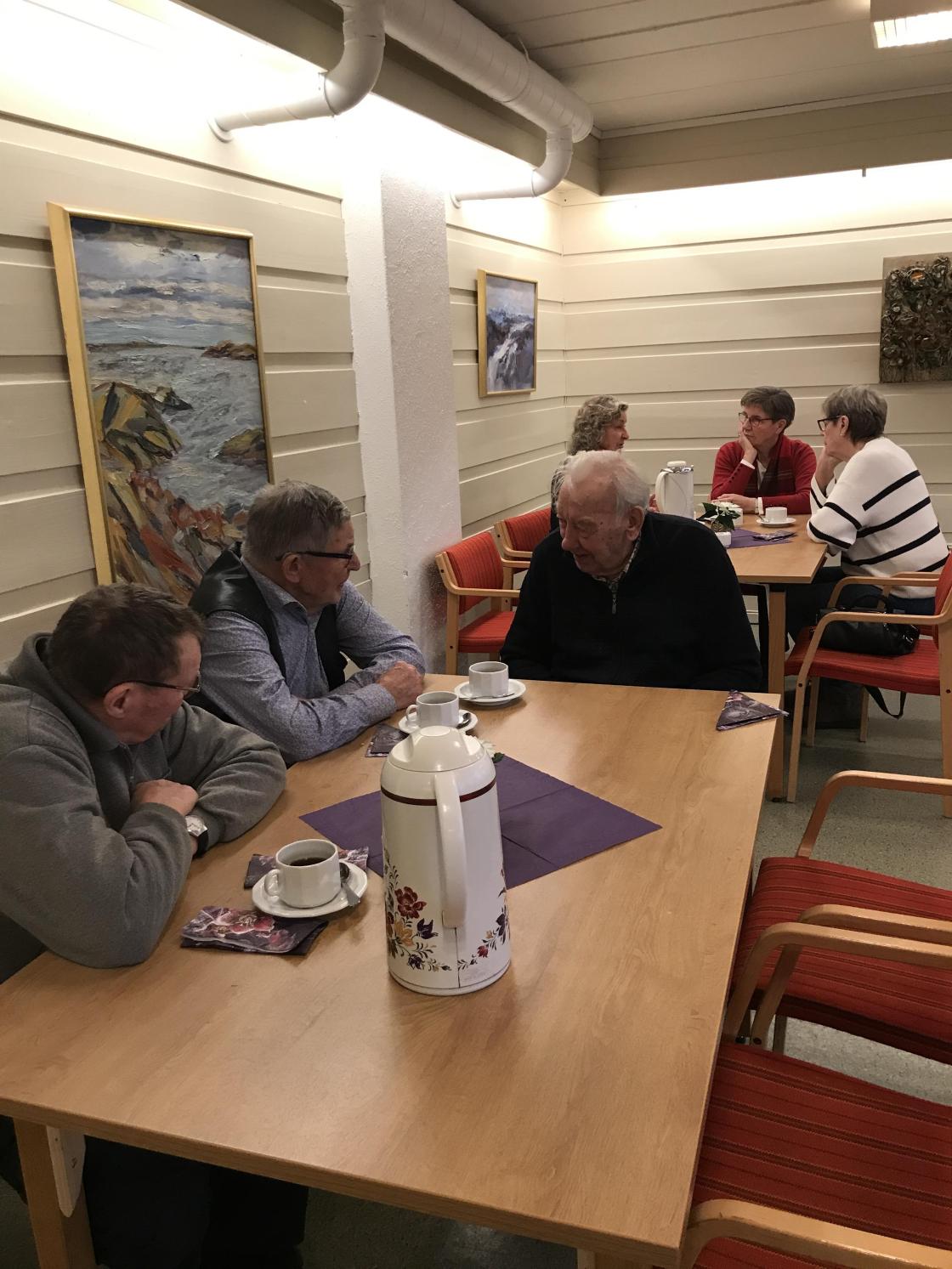 Praten gikk, og vi hygget oss - også med tre ulike kaker som ble servert etter hvert.