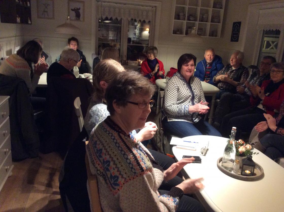 Leder Jorunn Kjærnes ønsket alle vel møtt til dette første møtet siden november. Mange hadde som sagt møtt opp. Ikke mange av oss som hadde vært innom her før.